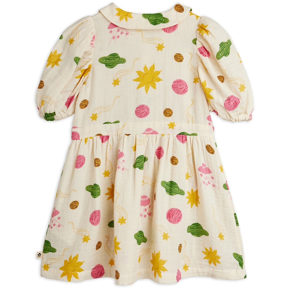 Mini Rodini Off-white Space AOP Muslin Woven Ss Kjole