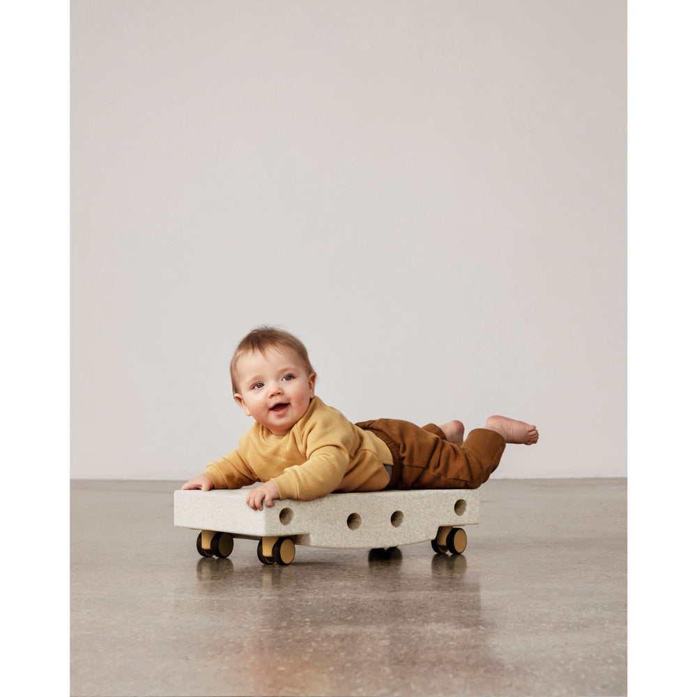 Gør legen dynamisk og udviklende med MODU Rullebræt i farverne Sand Grey og Honey Yellow. Dette motoriske legetøj er ideelt til at booste dit barns styrke og balance fra en tidlig alder. Start med enkle maveaktiviteter, hvor barnet får stimuleret sanserne ved behagelige bevægelser over gulvfladen. Som barnet vokser, tilbyder rullebrættet endnu flere muligheder: fjern hjulene og benyt det som et balancebræt, eller omdan det til gyngehest eller lille gåbil med ekstra MODU-klodser. Med en kapacitet op til 50 kg kan hele familien være med! Rengøring er en leg – rullebrættet er nemt at tørre af og tåler endda opvaskemaskine. Samspil og latter indgår i en hverdag, hvor leg og læring går hånd i hånd.