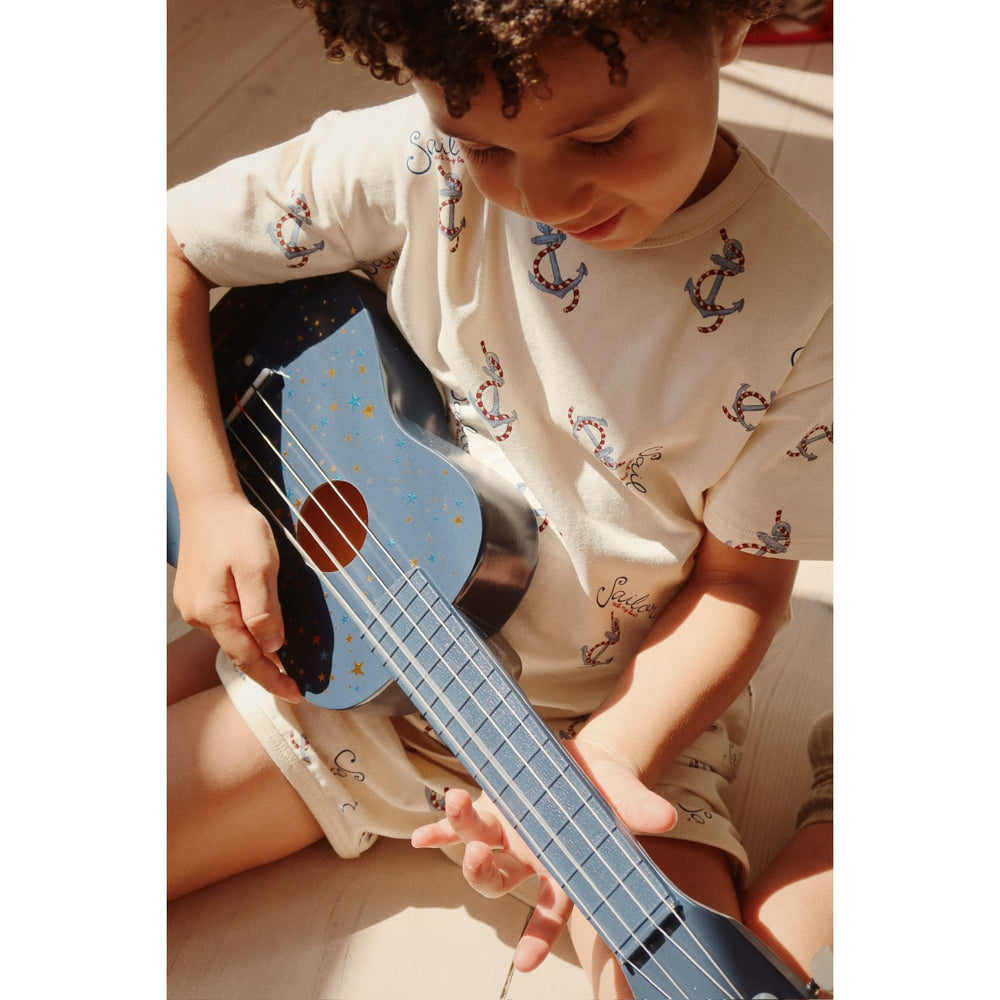 Giv dit barn glæden ved musik med Konges Sløjd Multi Star Ukulele! Denne charmerende ukulele er designet med børns sikkerhed og interaktivitet i fokus og er lavet af robust FSC-certificeret™ træ. Med sine fire snore tilbyder den en enkel introduktion til musikinstrumenter, hvilket gør det let og sjovt for små hænder at spille og lære. Ukulelens kompakte størrelse gør den ideel til små musikere og let at opbevare eller tage med på farten. Bring musik ind i dit hjem og nyd lyden af familiens samvær med denne indbydende legetøj.