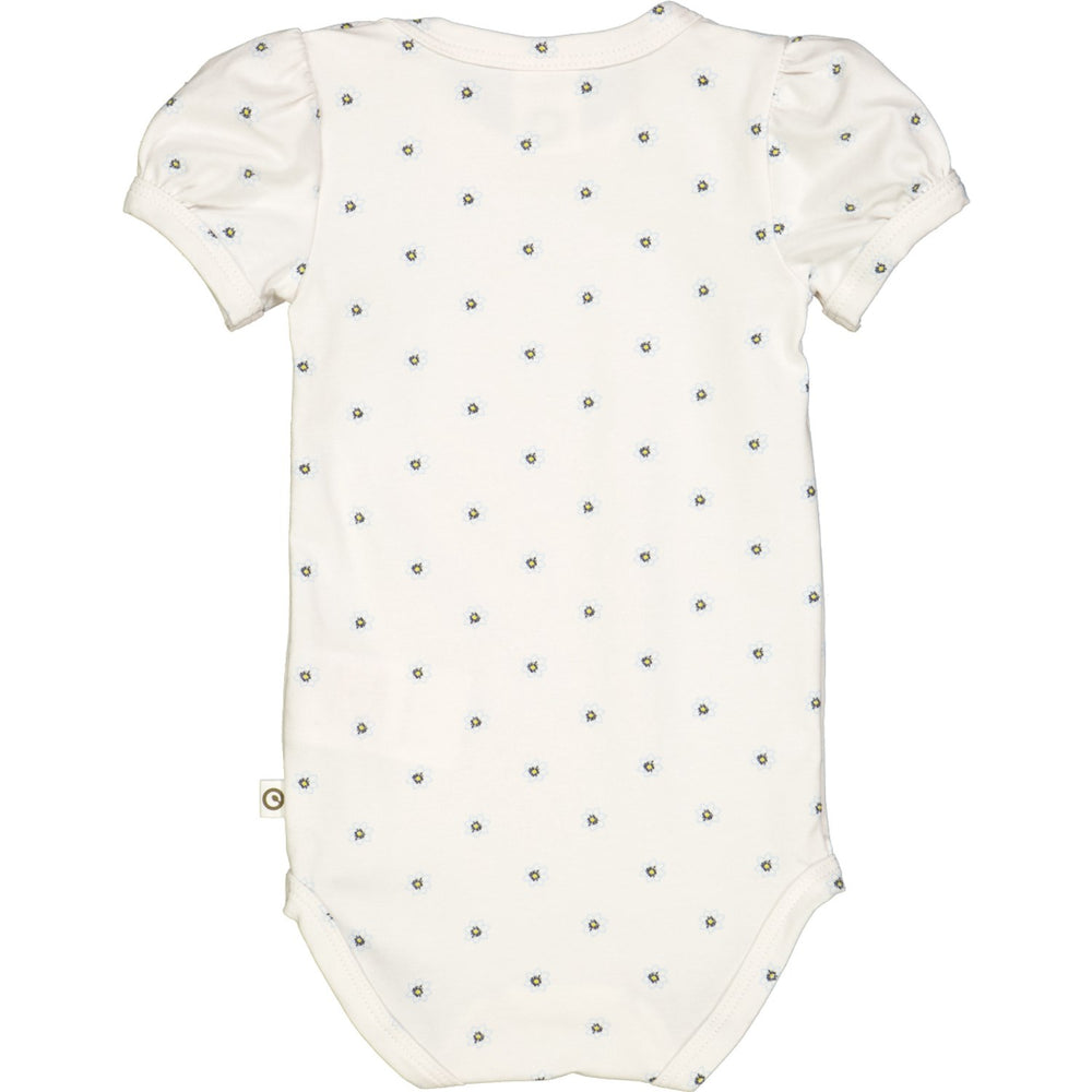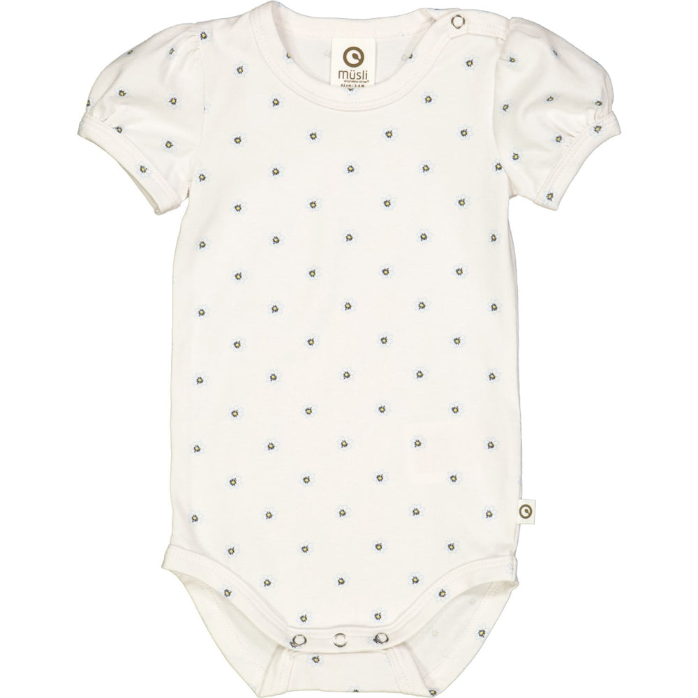 Denne charmerende body med korte ærmer, prydet med et delikat blomsterprint, forener stil og komfort. Designet inkluderer praktiske trykknapper ved halsen og i bunden, og er fremstillet af blød single jersey med 5% elastan for optimal pasform. Stoffet er GOTS økologisk certificeret, sikrer både miljøvenlige processer og retfærdige arbejdsforhold. Passer perfekt til hverdagsbrug og sikrer dit barns komfort.