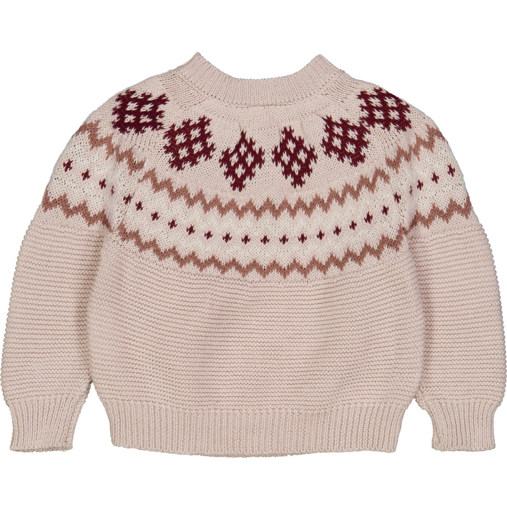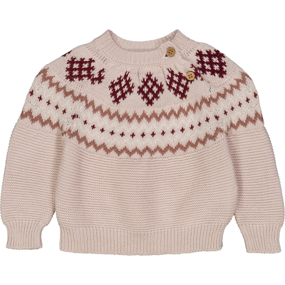 Oplev den charmerende Müsli Nightingale Strik Jacquard Sweater til børn, fremstillet i 100% økologisk bomuld. Denne kraftige, chunky striktrøje er ikke kun behagelig, men også smukt designet med et iøjnefaldende mønster øverst. Trøjen er udstyret med praktiske knapper ved halsåbningen, lavet af naturligt shesham træ, hvilket gør påklædningen nemmere. GOTS-organisk certificering sikrer, at hele fremstillingsprocessen opfylder strenge miljømæssige og sociale standarder. En ideel kombination af stil, komfort og miljøbevidsthed.