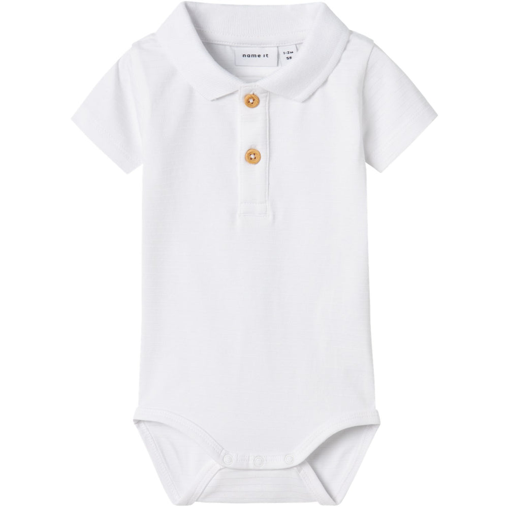 Forkæl dit barn med en 'Name It Bright White Hofman Polo Body', fremstillet i komfortabelt jersey-stof, der er både let og strækbart. Denne polo bodysuit giver fremragende bevægelsesfrihed og en blød følelse mod huden, ideel til dit barns aktive hverdag. Designet med korte ærmer, rund hals og praktisk trykknaplukning, er den både nem at tage på og praktisk til hurtige bleskift. Detaljer som knapper tilføjer et stilfuldt præg, mens den klare hvide farve sikrer en frisk og ren look.
