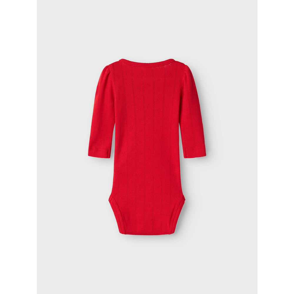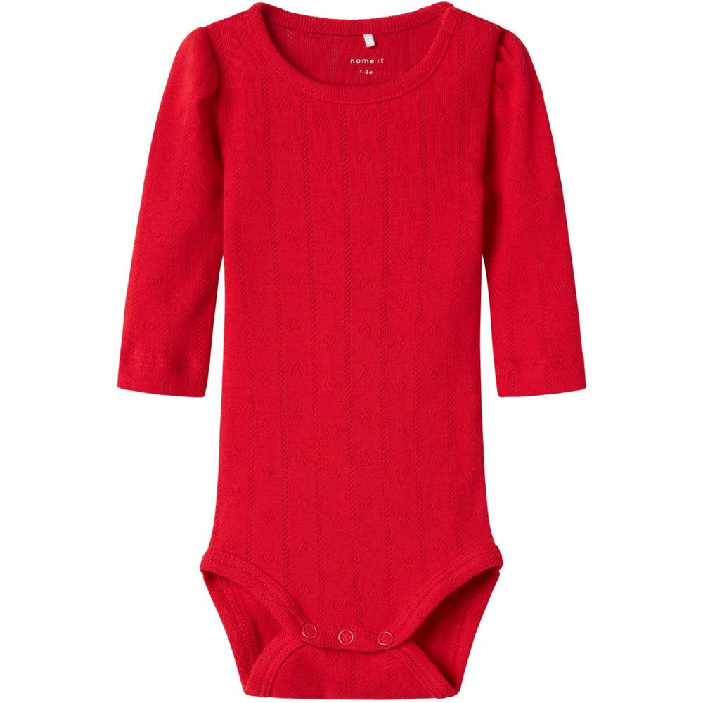 Forkæl din lille med en behagelig Name It Dagnes Body i livlig kinesisk rød. Denne bodystocking er fremstillet med øje for både stil og funktionalitet, idet den bløde pointelle-strik beriges med et delikat geometrisk mønster, der tilføjer et strejf af elegance. Praktiske trykknapper ved skuldrene og i bunden sikrer let påklædning og skift. Med pufærmer og en klassisk rund hals fremstår denne bodystocking ikke kun charmerende, men også yderst komfortabel for dit barn. Ideal til daglig brug eller specielle lejligheder.