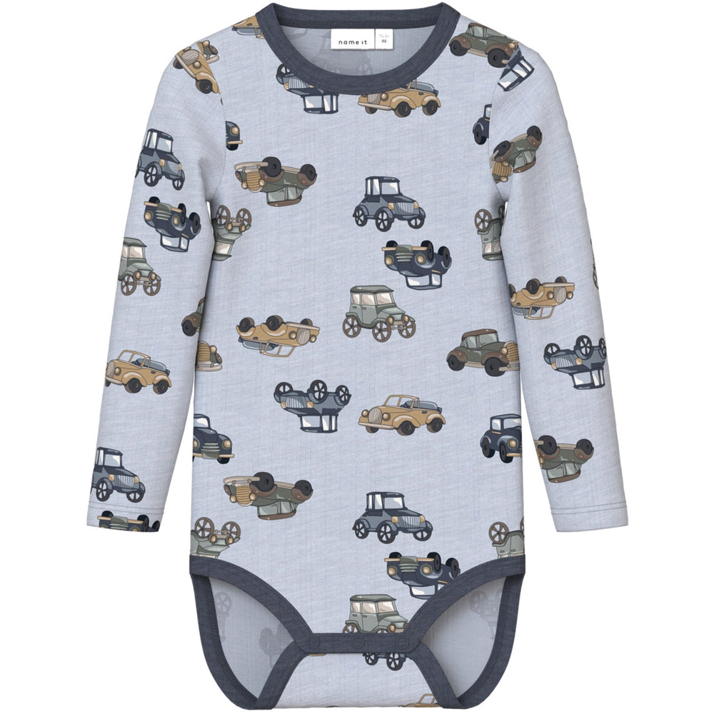 Gør hverdagstøj lidt blødere med denne "Name It Gray Dawn Wang Uld Needle Body Noos" bodystocking. Den er fremstillet i blød uld, der sikrer din lille varme og komfort. Det unikke nåledrop-design med faldsting skaber et charmerende mønster, mens de lange ærmer og praktiske trykknapper gør den ideel til daglig brug. Perfekt til at holde dit barn varmt på kølige dage.