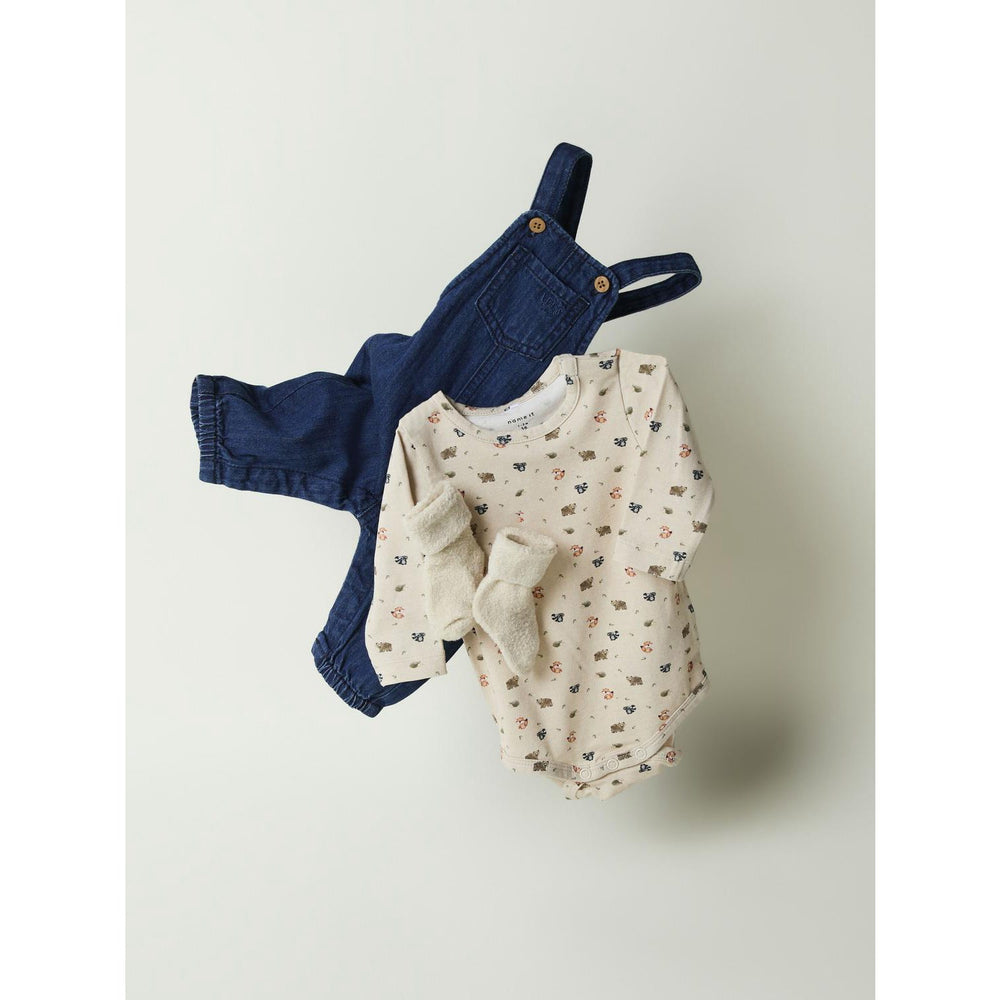 Giv din lille én komfort og stil med Name It Peyote Melange Nbmoforest Ls Body. Denne bodystocking, fremstillet i blødt og strækbart jersey materiale, sikrer optimal bevægelsesfrihed og en behagelig pasform. Designet med lange ærmer, rund hals og praktiske trykknapper for let på- og aftagning. Det gentagne mønster tilføjer en sjov detalje til hverdagsbrug. Perfekt til både leg og hvil.