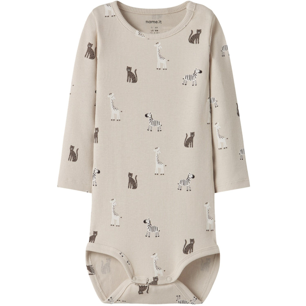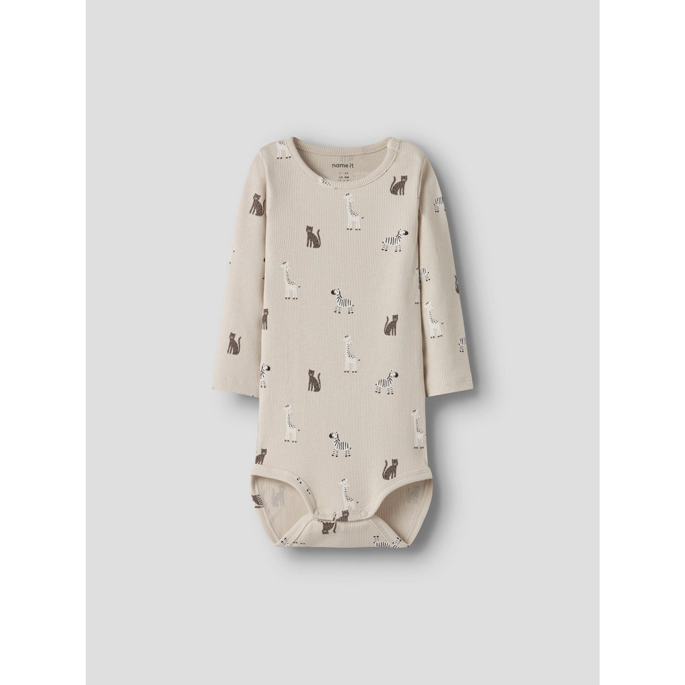 Gør hverdagen lettere og mere komfortabel for dit barn med Name It Summer Sand Nbntolla Ls Body. Denne bodystocking er fremstillet i blødt ribstrikket materiale, der sikrer en behagelig pasform takket være den naturlige elasticitet. Med praktisk trykknaplukning ved skulderen og i skridtet er den nem at tage på og af. Designet byder på lange ærmer og en klassisk rund hals, mens det gentagne mønster tilføjer et sjovt og charmerende touch. Det er en ideel løsning for aktive børn året rundt.
