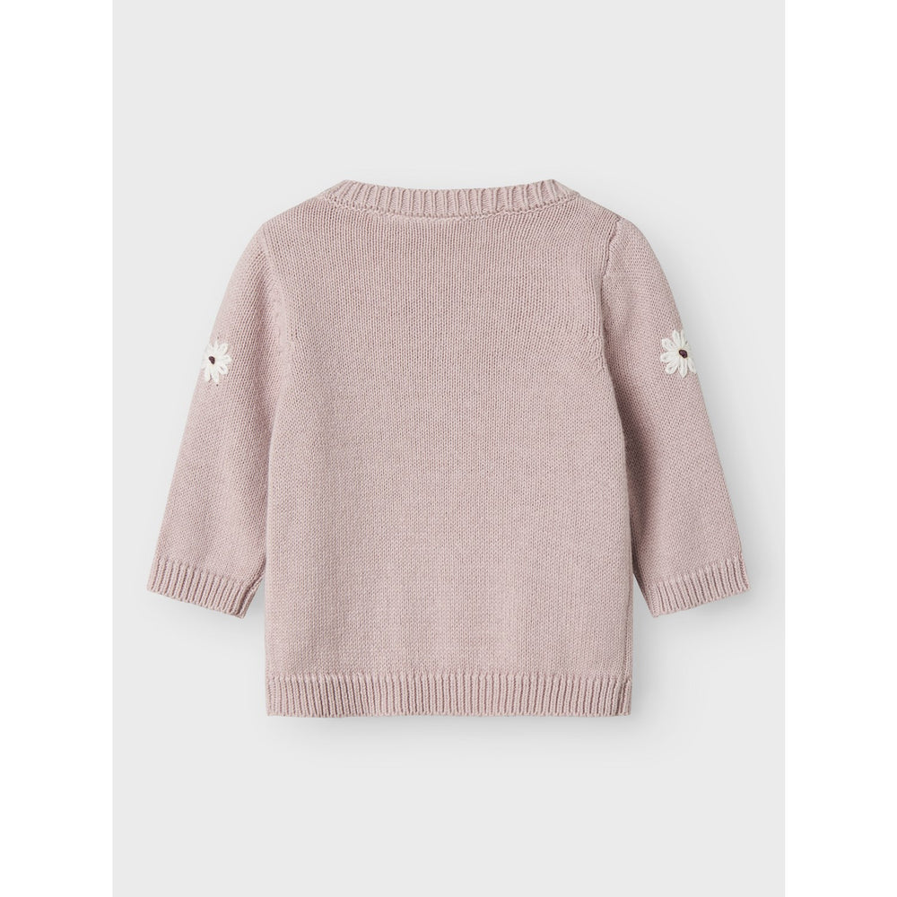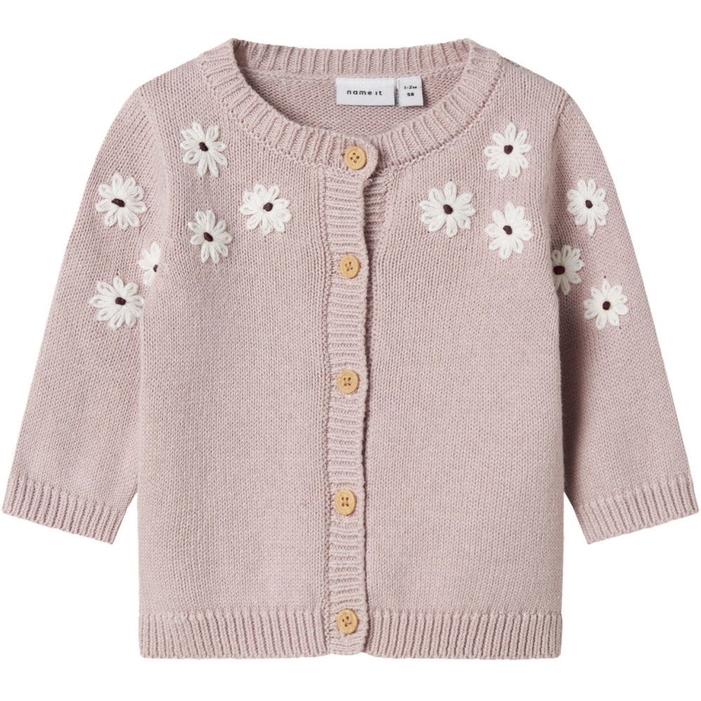Gør hverdagen lidt sødere og mere stilfuld med denne strikkede cardigan i 'Burnished Lilac' fra Name It. Denne cardigan kombinerer funktionalitet med en charmerende æstetik, perfekt til leg og læring. Fremstillet i behagelig fladstrik garanterer den en komfortabel pasform, mens ribmanchetterne sikrer, at ærmerne bliver, hvor de skal. Den praktiske knaplukning gør den let at tage af og på, og det fine broderi tilføjer et unikt touch. Cardiganen har en klassisk rund hals og generøs pasform, der giver plads til bevægelse. Velegnet til forskellige lejligheder og nem at kombinere med resten af barnets garderobe.