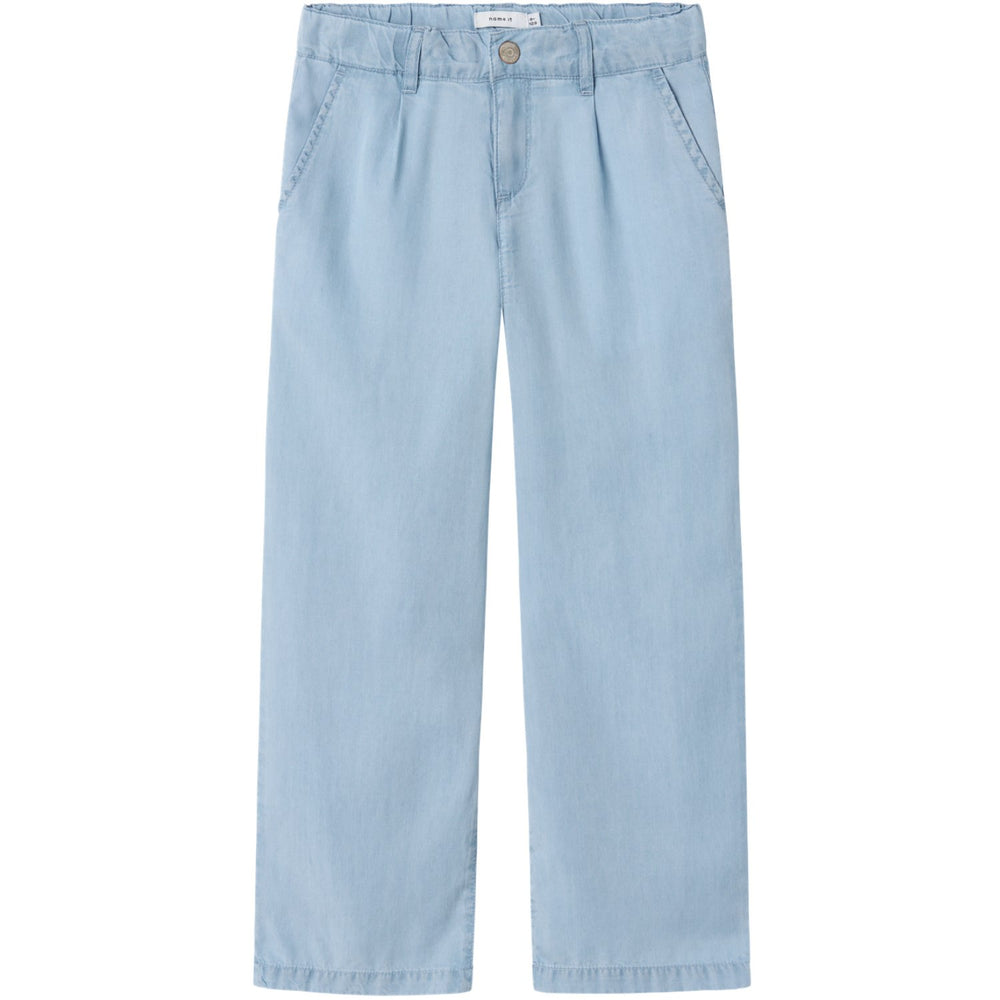 Disse lyseblå Name It Rose Wide Jeans er perfekte for ethvert barn, der elsker stil og komfort. Fremstillet af holdbart denim, tilbyder de en bred pasform, der sikrer bevægelsesfrihed, uanset aktiviteten. Jeansene er forsynet med en praktisk krogknap og lynlåsgylp, der gør dem lette at tage af og på. De fine plisserede detaljer og de subtile slid giver et unikt og moderne præg. Med almindelig pasform omkring hoften passer disse jeans perfekt til den voksende børnekrop, og de slidstærke materialer sørger for, at de kan holde til både leg og hverdagsbrug.