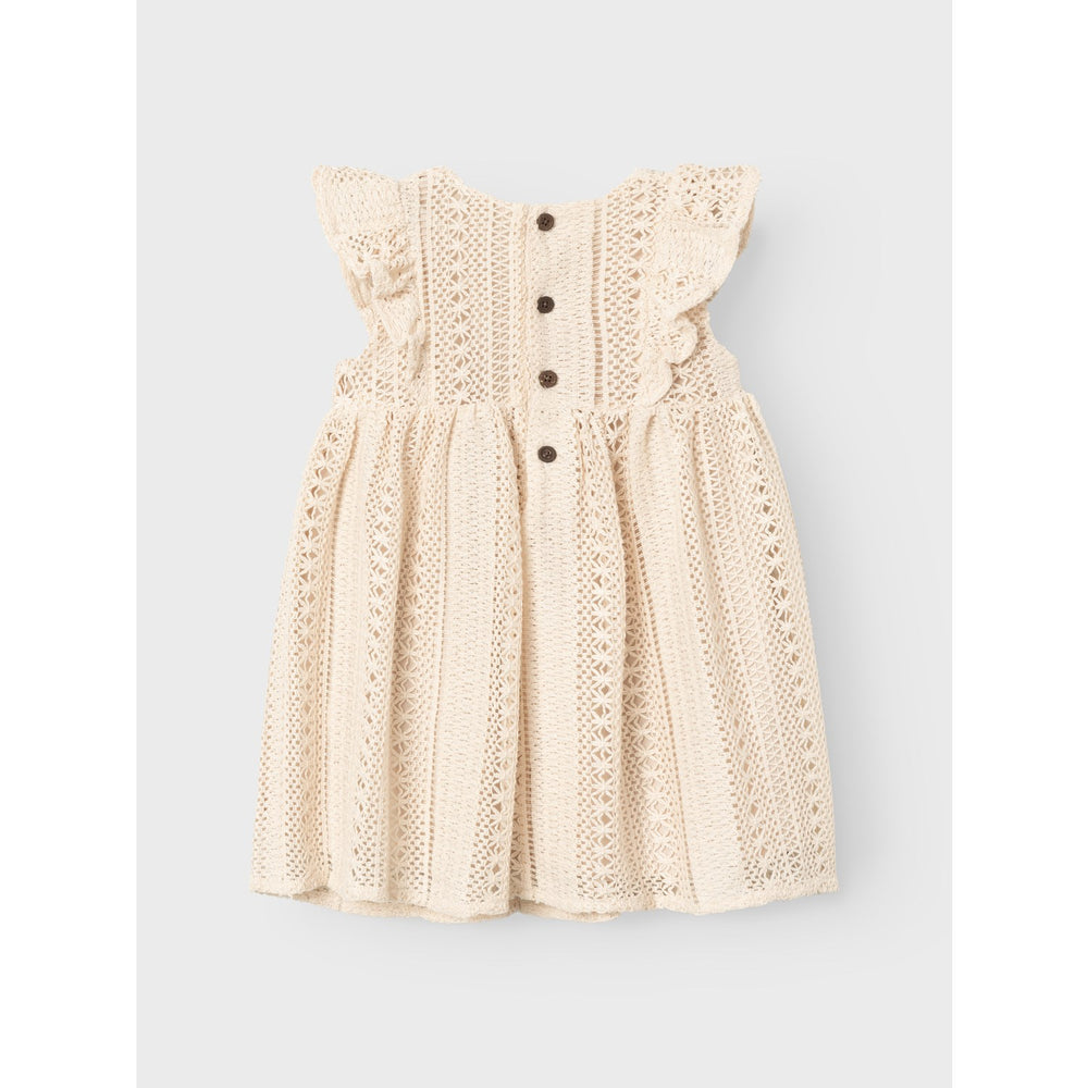 Gør sommerdagene ekstra charmerende for din lille med Name It Hisilka Spencer Kjole. Denne kjole kombinerer komfort med elegant design, fremstillet med ærmeløs snit og rund hals, der sikrer en behagelig pasform for leg hele dagen. Øjenfangende blondedetaljer og en smart elastik i taljen tilføjer et touch af finesse, mens bomuldsforet sikrer fuld dækning. Kort længde og praktisk knaplukning gør den ideel til nem påklædning. Et must-have til børnegarderoben denne sæson!