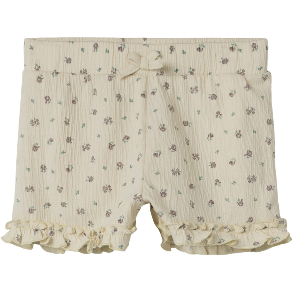 Gør sommergarderoben komplet med Name It Bleached Sand Jannis Shorts, der lover komfort og stil i én. Disse shorts er fremstillet i jersey, et åndbart, strækbart materiale, der sikrer optimal bevægelsesfrihed og blødhed mod huden. Designet er præget af charmerende flæsekanter og en praktisk elastik i taljen, hvilket gør dem ideelle til leg og afslapning. Det gentagne mønster tilføjer et legende touch, mens den almindelige pasform sikrer en god og behagelig siddekomfort. Et must-have for enhver sommertid!