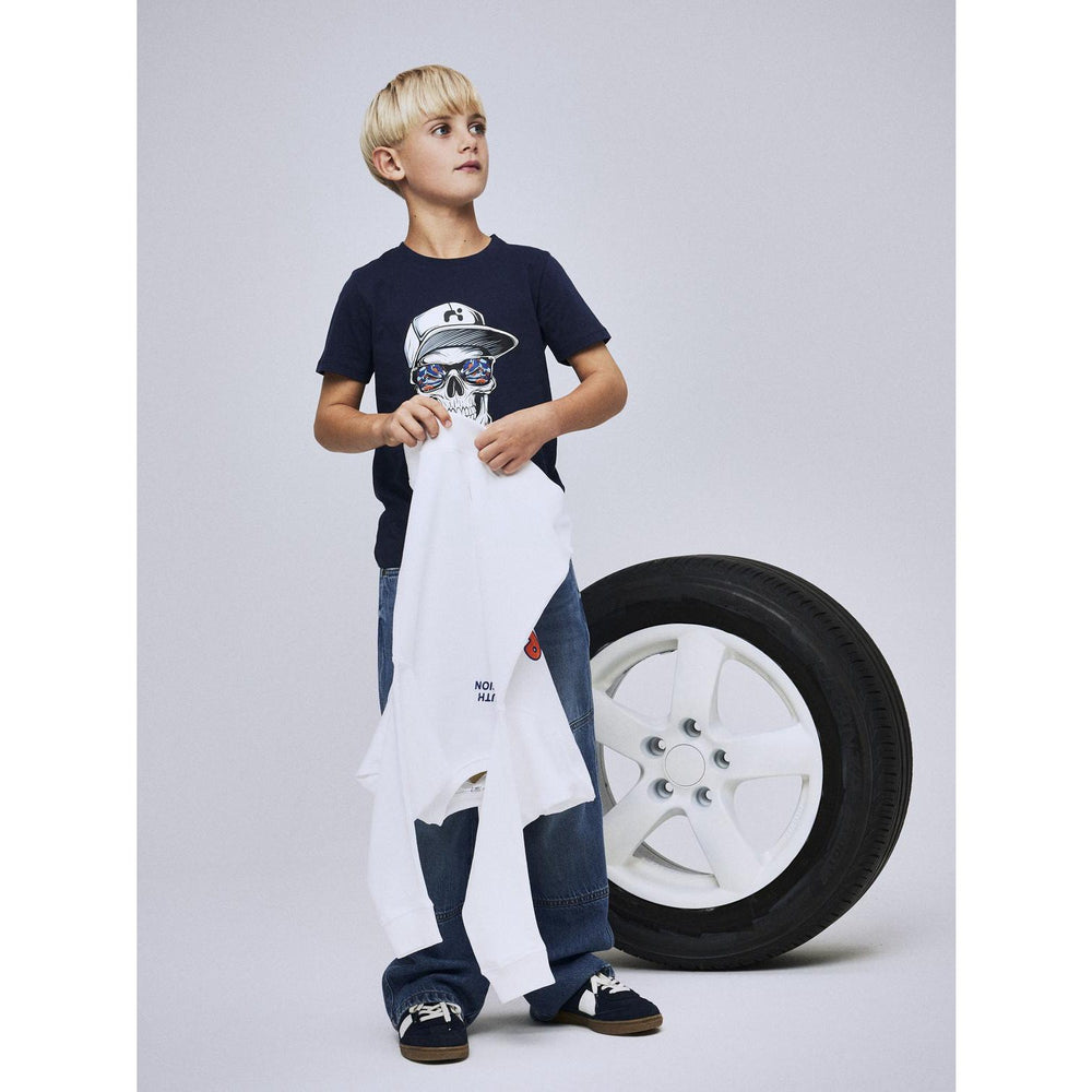 Gør hverdagen særlig for dit barn med denne Name It Navy Blazer Nkmlorne Ss Top T-shirt. T-shirten er fremstillet i jersey, der er kendt for sin lethed og elasticitet, hvilket sikrer optimal komfort og bevægelsesfrihed. Med sit bløde touch både indvendigt og udvendigt er den ideel til børns følsomme hud. Designet inkluderer en klassisk rund hals og korte ærmer, som sammen med den almindelige pasform tilbyder en behagelig og flatterende silhuet. T-shirten har desuden en unik gummiprint, der føles blød mod huden.