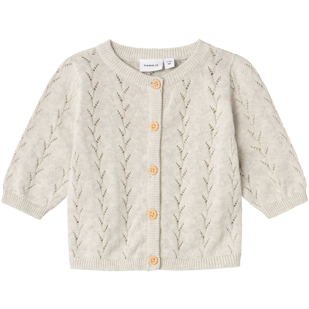 Skab en hyggelig og stilfuld hverdag for dit barn med denne strikkede cardigan fra Name It. Cardiganen, som er fremstillet i blød pointelle-strik, tilbyder både komfort og holdbarhed med sit åbne, geometriske mønster. Den runde hals og de lange ærmer med ribmanchetter sikrer en god pasform, mens knaplukningen gør det let at påklæde og afklæde. Med sit klassiske snit og praktiske design er denne cardigan ideel til både leg og afslapning.
