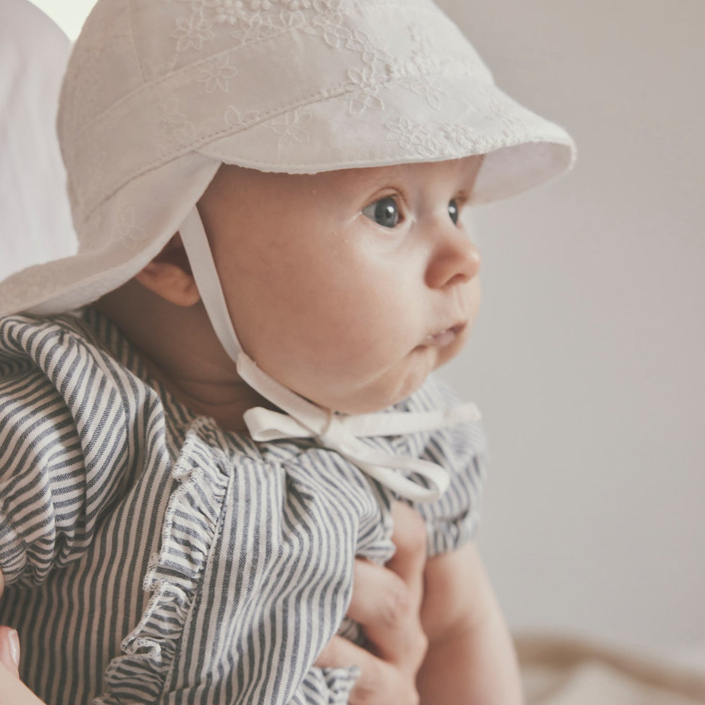 Huttelihut Antique White Summer Hat Embroidery - 3-6 mdr/44 er i restordre og vil blive sendt, så snart det er på lager igen.