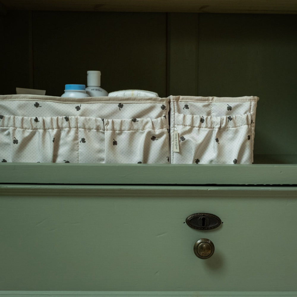 Gør skiftetiden let med "That's Mine Specks Of Luck Lucy Nursing Organizer." Denne kompakte, men rummelige opbevaringskasse er designet til at holde bleer, cremer og muslinklude inden for nem rækkevidde. Med et stort rum og en praktisk endelomme er det den perfekte vuggekammer. For at spare plads kan du bare fjerne den hårde base og folde den fladt, når den ikke er nødvendig. Let at passe, tør blot af med en fugtig klud. Mål: 32 cm L x 15 cm B& x 13 cm H. Hold dine skiftende nødvendigheder organiseret og stilfuldt gemt væk!
