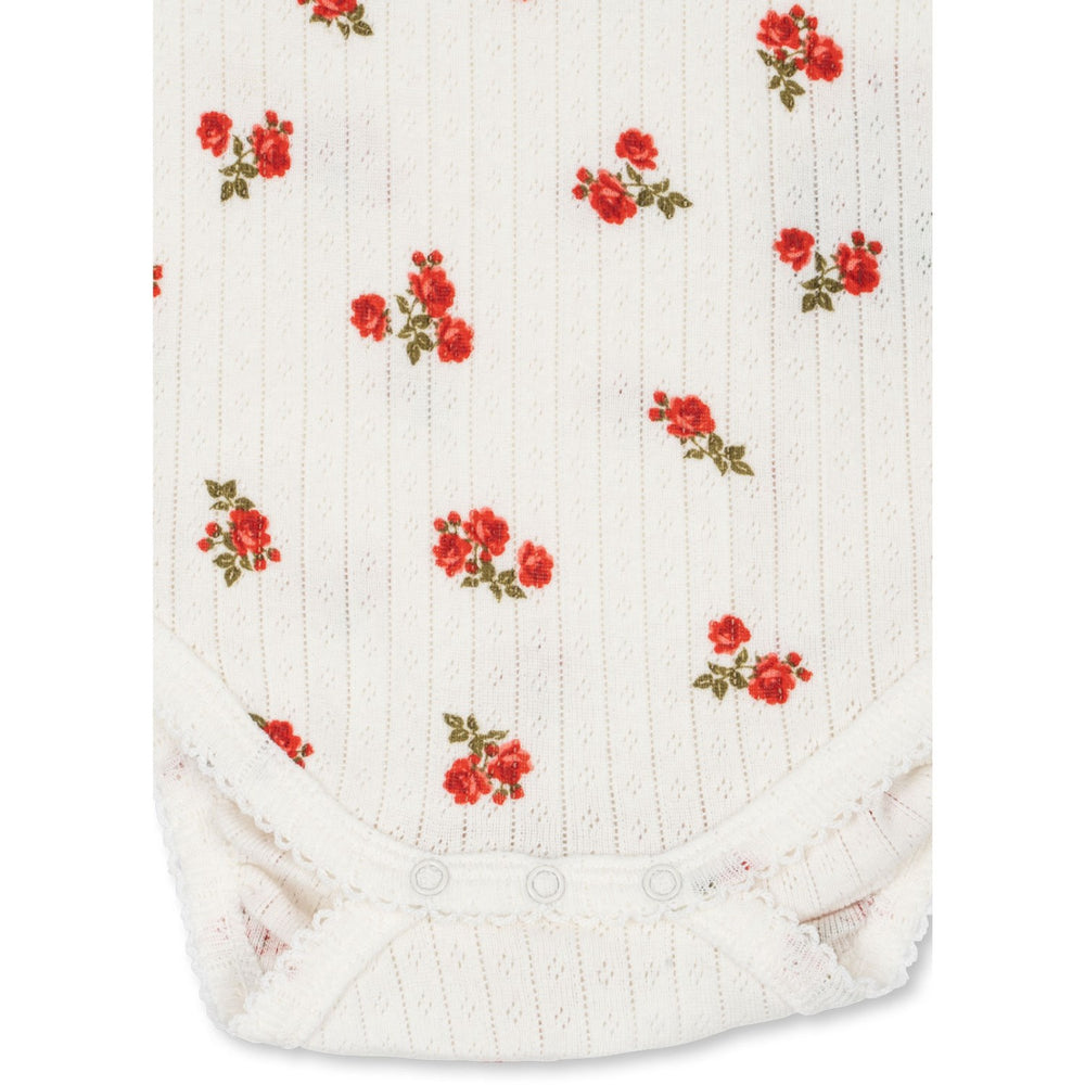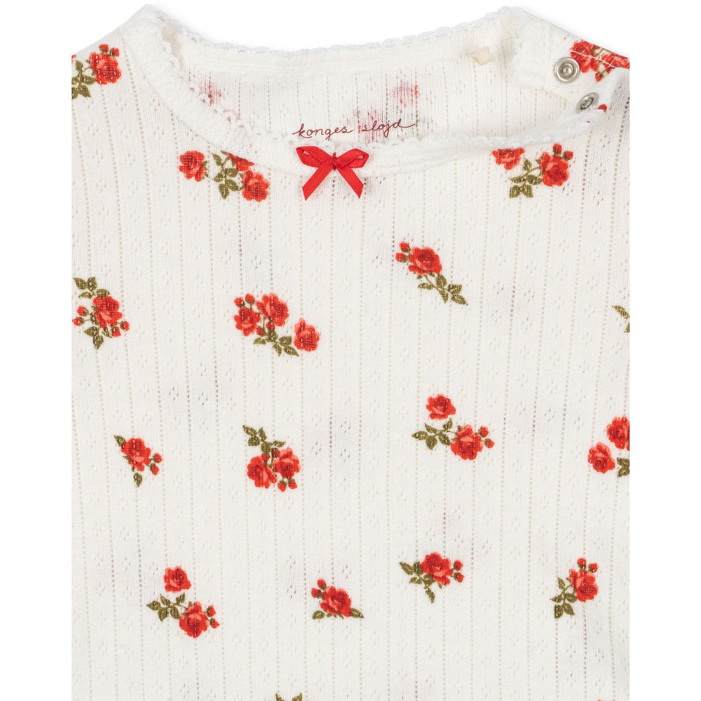 Konges Sløjd Rose Red Minnie Body er fremstillet i 100% økologisk bomuld og er GOTS-certificeret (CU1094701), hvilket sikrer høj kvalitet og omtanke for miljøet. Denne bodystocking har et charmerende pointelle-design og praktiske knapper ved skulderen op til størrelse 18 måneder, der gør påklædningen nemmere. Den bløde bomuld sikrer komfort hele dagen, mens den levende røde farve tilføjer stil til din lille skats garderobe.