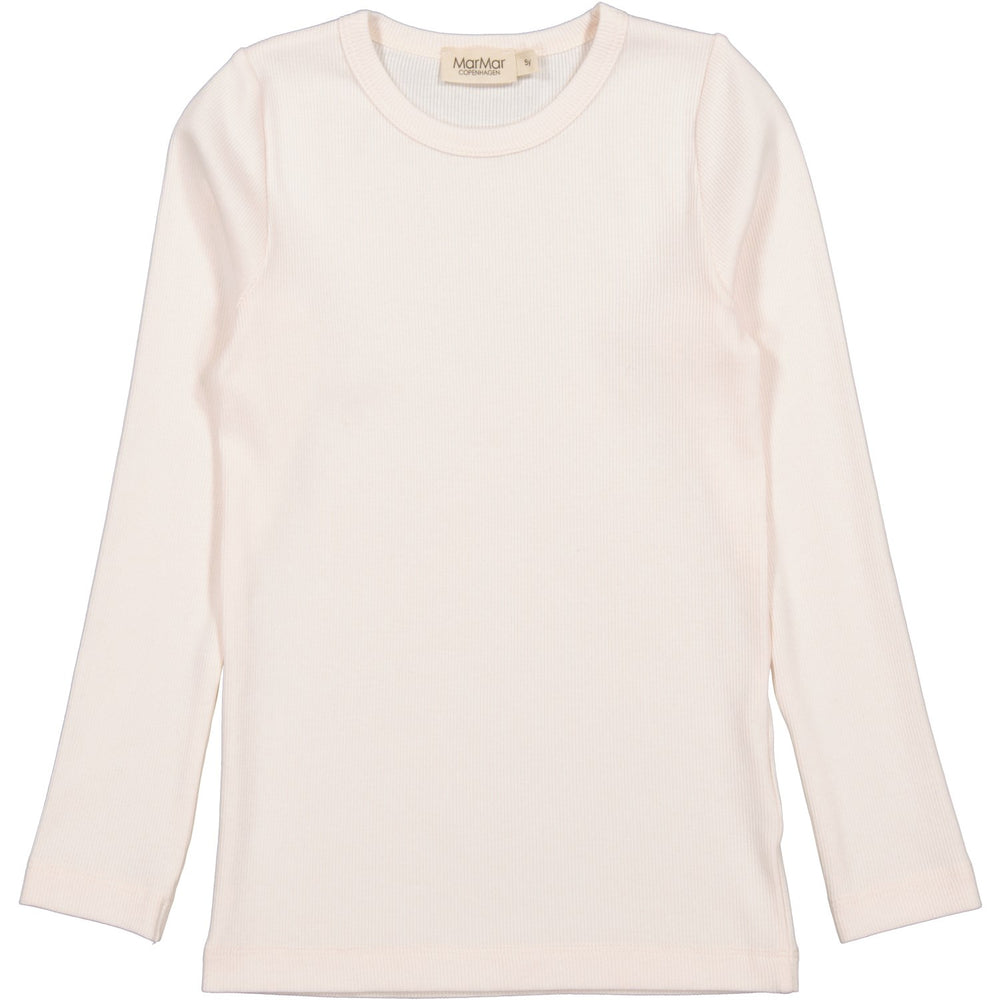 Denne langærmede t-shirt i smal ribstrik fra MarMar kombinerer funktionalitet med stil. Fremstillet af økologisk bomuld med et strejf af elastan, sikrer den både komfort og holdbarhed. Blusen er testet Oeko-tex® for at være fri for skadelige kemikalier, hvilket gør den ideel til børns sensitive hud. Med dens åndbare kvalitet og evne til at bevare både form og farve, er dette en pålidelig hverdagsbluse for dit barn.