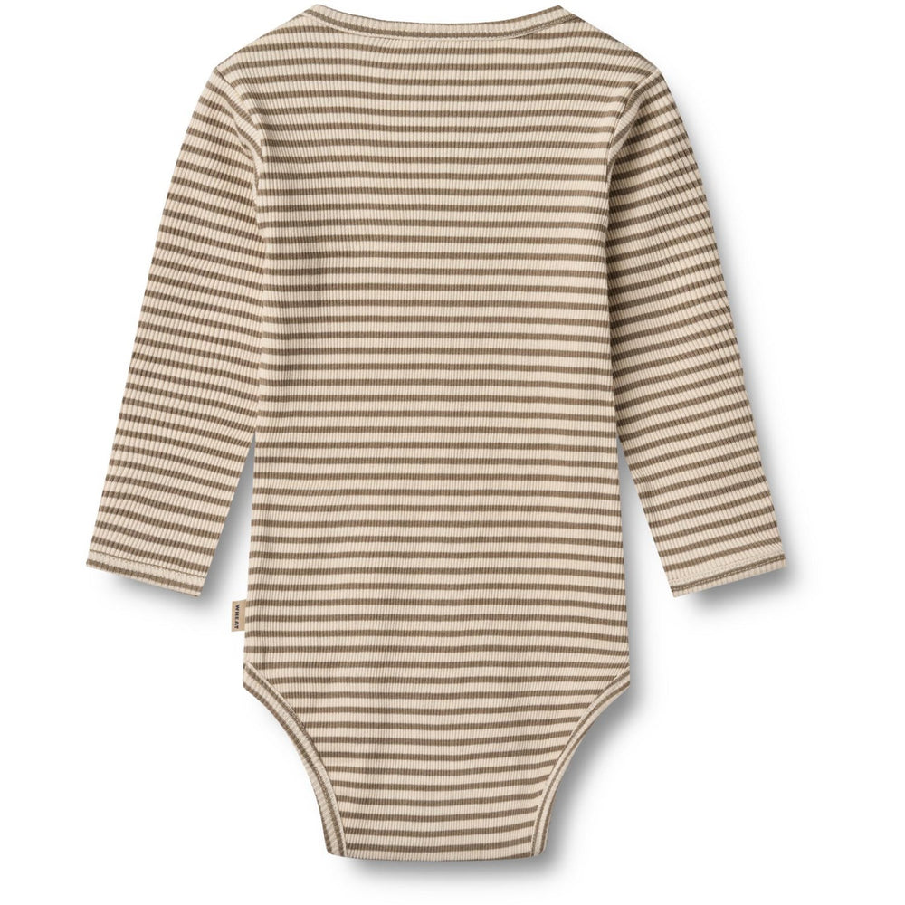 Denne langærmede Wheat Stone Stripe Body L/S Berti for babyer er fremstillet i blød, 100% økologisk bomuld, der sikrer behagelig komfort hele dagen. Det klassiske, ribbede design med fine striber tilføjer et stilfuldt touch, mens den praktiske unisex model gør den til en alsidig tilføjelse til enhver garderobe. Bodyen er udstyret med trykknapper ved skulderen og i skridtet, som gør påklædning og ble-skift let og bekvemt. Øko-venligt valg med OEKO-TEX® Standard 100 og GOTS-certificering, der garanterer en sikker og sund brug.