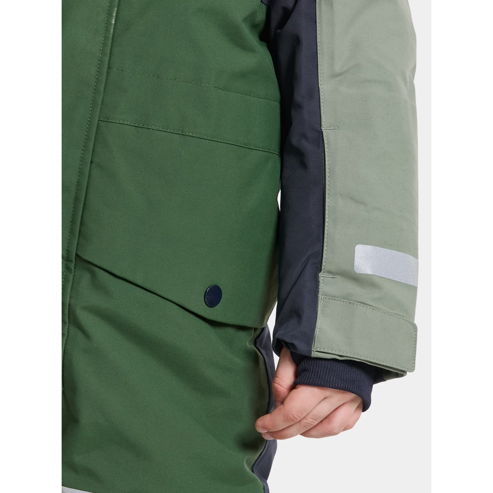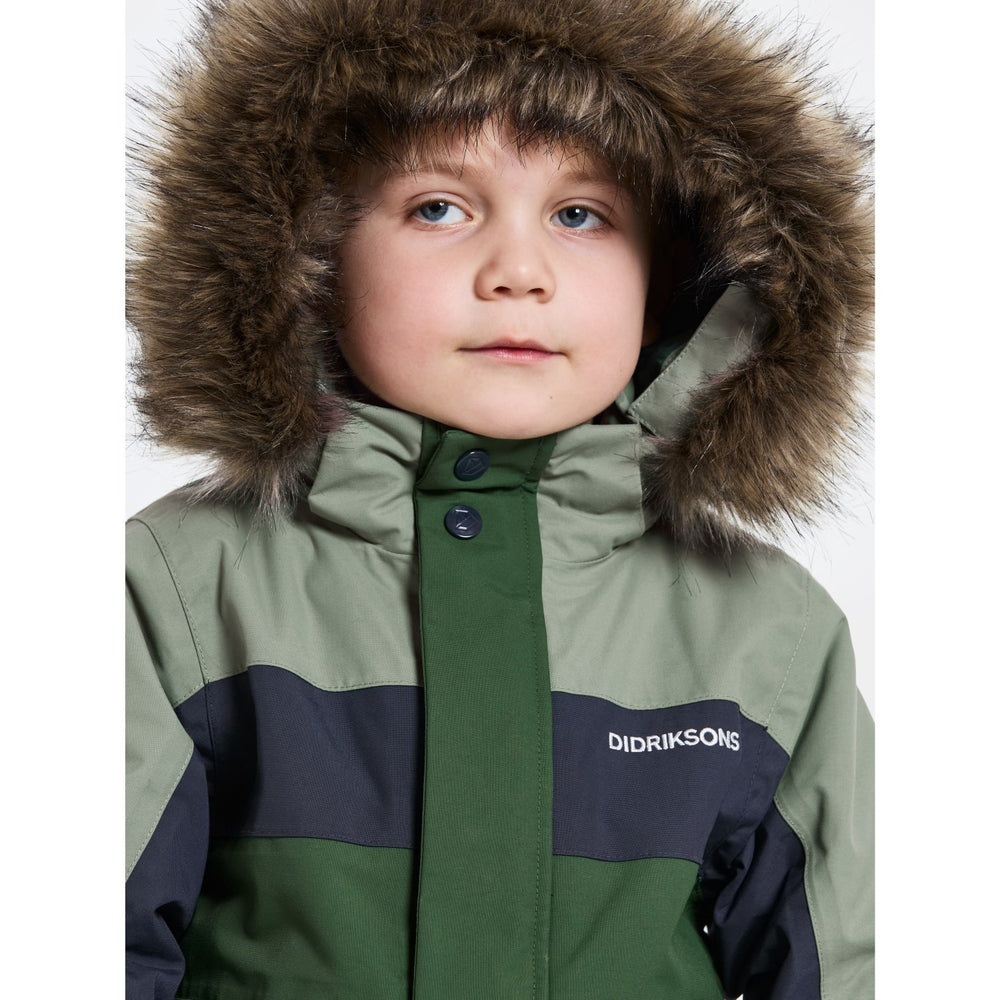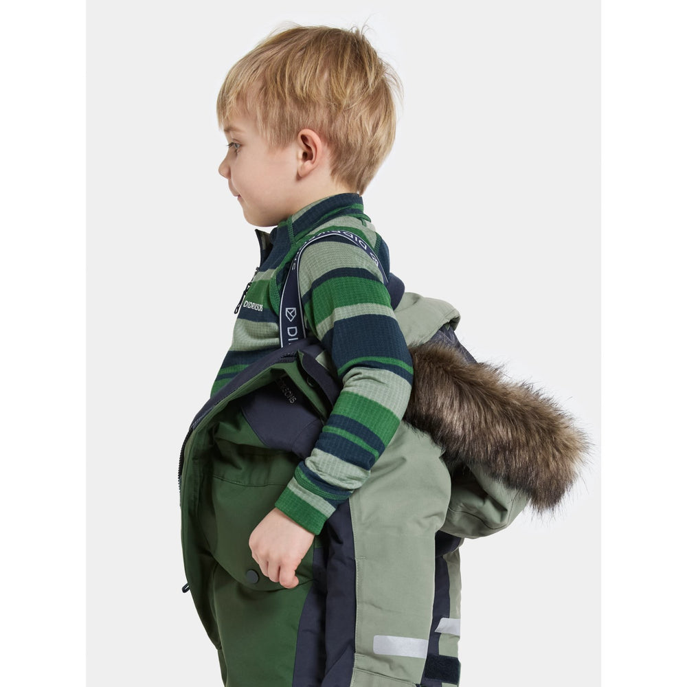 Denne børneflyverdragt fra Didriksons er både funktionsrig og holdbar, perfekt til aktive børn. Med en justerbar og aftagelig hætte samt syntetisk pels, sikrer den komfort og fleksibilitet i al slags vejr. Den har en ergonomisk pasform og praktiske lommer, inklusiv en særlig liftpaslomme. Den unikke stofkortlægning bidrager til optimal bevægelse, mens reflekser på ben og ærmer øger sikkerheden. Solide justeringsmuligheder ved ærmer og ben sikrer perfekt pasform, og de indvendige skulderstropper gør den let at tage med på farten.