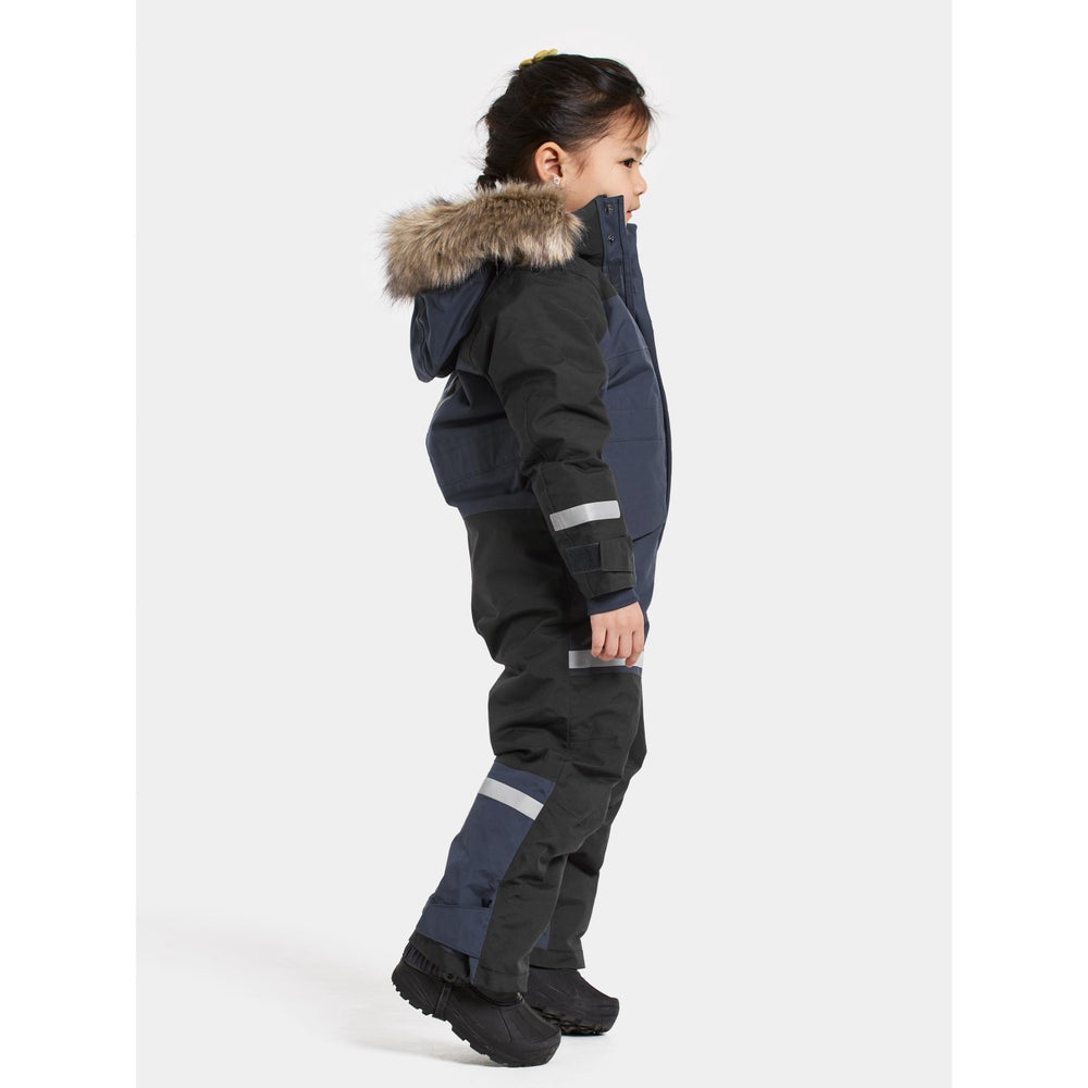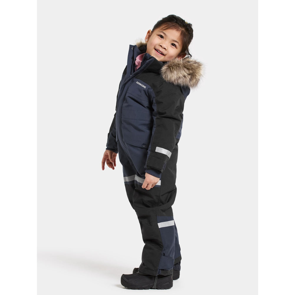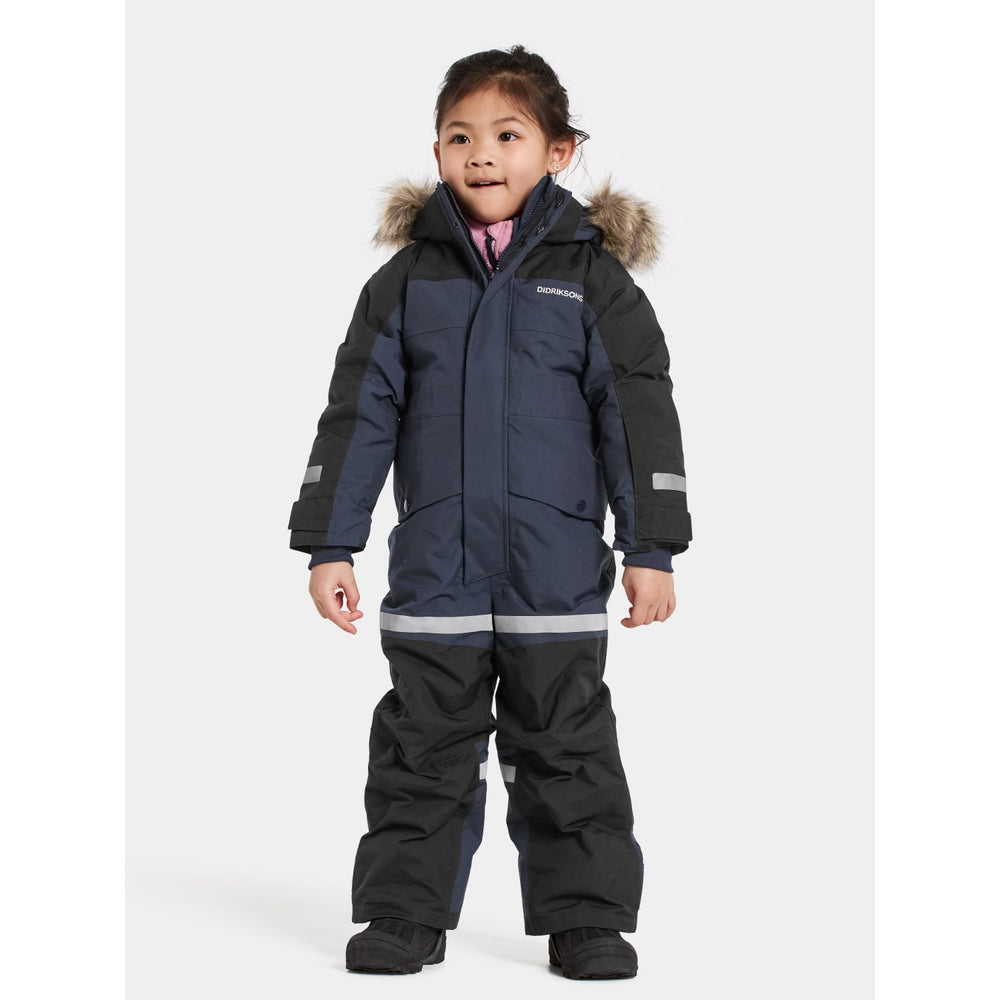Denne flyverdragt fra Didriksons er designet til at holde dit barn varmt og tørt. Den har justerbare funktioner som aftagelig hætte med syntetisk pels, samt justerbare benender med silikone fodstropper for optimal pasform. Med praktiske lommer, inklusive en løkke til reflekser og en liftpaslomme, samt reflekser for øget synlighed. Ergonomisk snit, forlængelige størrelser på ben og ærmer, samt indvendige skulderstropper, sikrer komfort og langvarig brug.