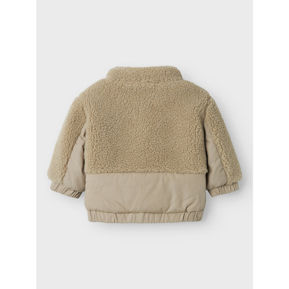 Lil'Atelier Laurel Eg Nalo Loose Jakke er perfekt til de små eventyrere. Denne jakke, designet med en høj opretstående krave og lange ærmer med elastiske manchetter, sikrer maksimal komfort og varme. Det fluffy sherpa-ydre kombineret med blødt økologisk bomuldsjerseyfor indbyder til hygge og bevægelsesfrihed. Jakken har en praktisk lynlåslukning og elastisk søm, men bemærk at lommerne er ikke-funktionelle. En ideel følgesvend til kølige dage.