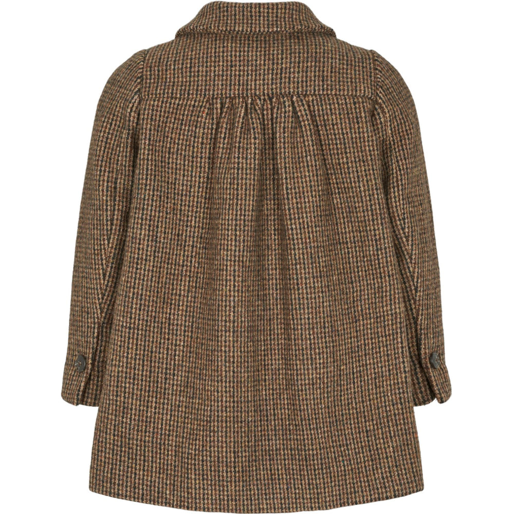 Gør dit barn klar til vinteren med denne klassiske MarMar Wool Check Earthy Check Olive uldfrakke. Dette tidløse stykke tøj er fremstillet i varmende uld og præsenterer et stilfuldt ternet mønster. Jakken er udstyret med praktisk knaplukning og kommer med to diskrete forlommer, som forsigtigt kan åbnes. Den elegante rynkning på ryggen sikrer en flatterende pasform. Denne jakke er ideel til at holde dit barn varmt og komfortabelt med et touch af elegance på kølige dage.