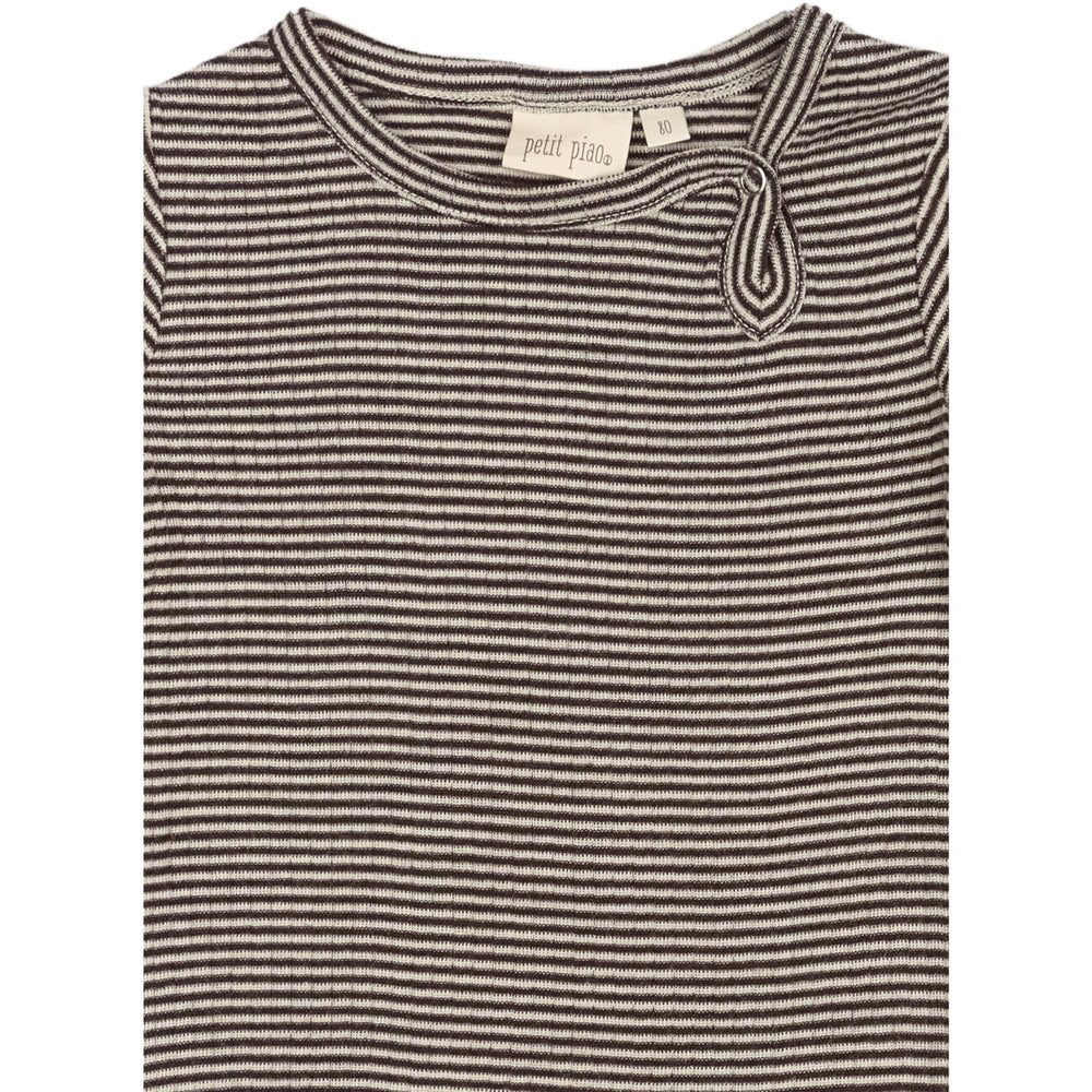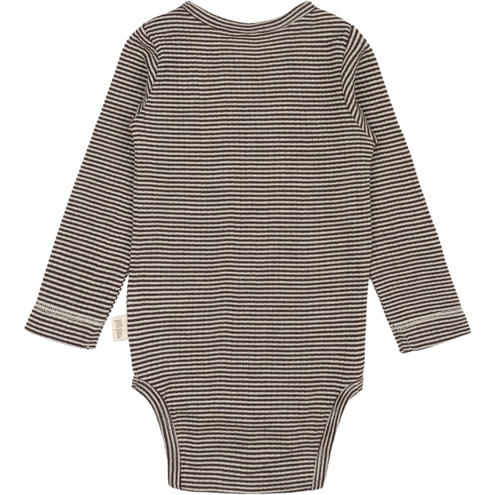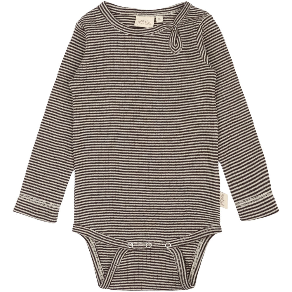 Petit Piao Coffee Bean/Dark Off White PPDante Body L/S Merino Uld Striped