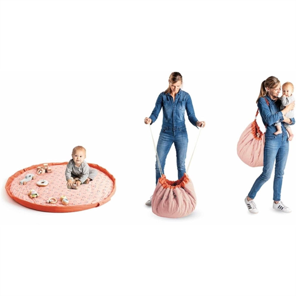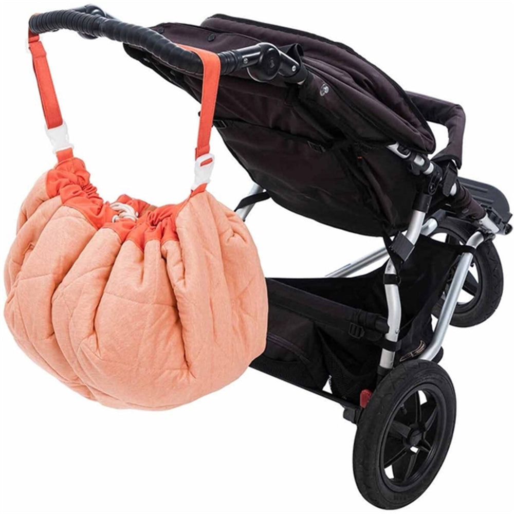 - Kan både bruges som legetæppe, opbevaringspose og taske der kan hænges på klapvognen/Barnevognen