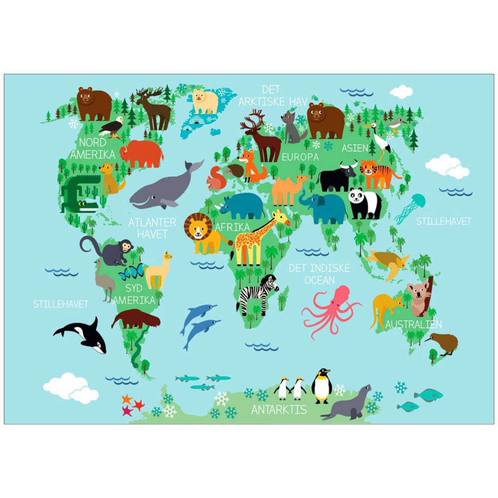 Poster & Frame Citatplakat - Verdenskort Plakat Med Dyr Til Børn