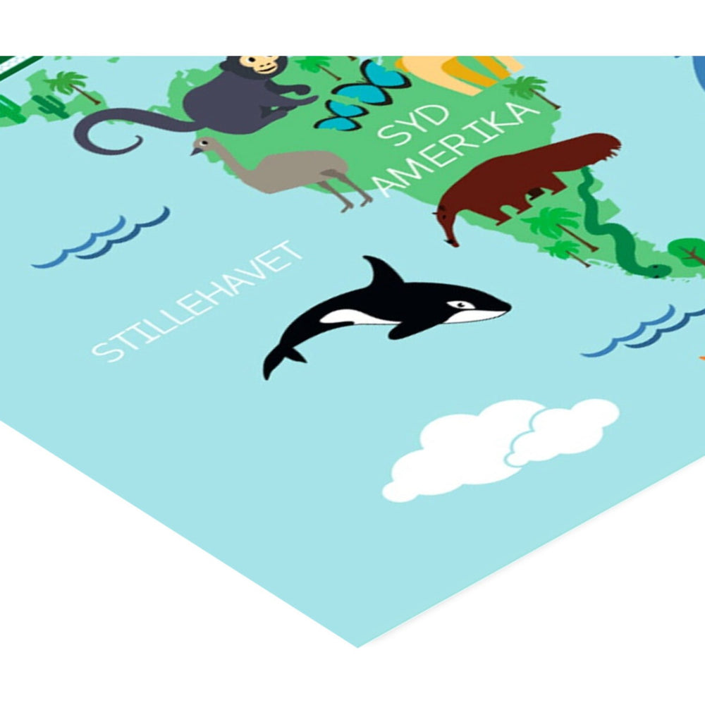Forskøn børneværelset med vores charmerende Verdenskort plakat med dyr. Denne farverige og lærerige plakat til børn gør det sjovt og engagerende for dem at opdage verdens geografi sammen med spændende dyr, hvilket stimulerer både erkendelse og nysgerrighed. Ideel til daglig læring og dekoration, den passer naturligt ind i enhver børneværelsesindretning. Plakaten er trykt på FSC-certificeret papir og understøtter dermed ansvarligt skovbrug. Et perfekt blikfang, der bringer både viden og stil til dit hjem, samtidig med at det understøtter barnets udvikling.
