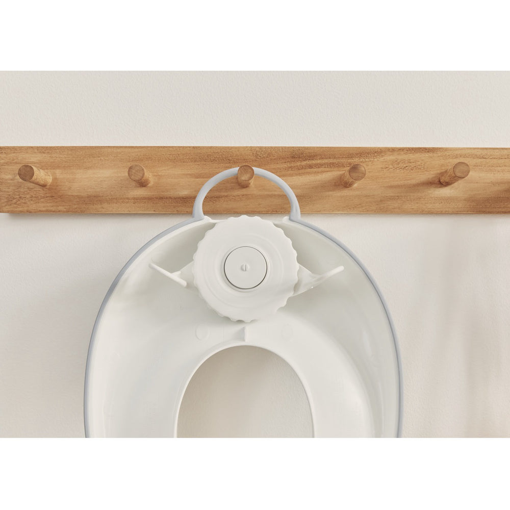 Giv dit barn en tryg start på toilettræningen med BabyBjörn White/Grey Toiletsæde. Designet til komfort med en blød, afrundet form og udstyret med en effektiv stænkskærm, gør det overgangen fra ble til toilet enklere for både barn og forældre. Sædets sikkerhedsfokuserede konstruktion inkluderer en skridsikker gummikant og en nemt justerbar drejeknap, der sikrer, at sædet passer til de fleste toiletstørrelser og forbliver stabilt. Efter brug kan sædet nemt hænges op ved det integrerede håndtag, hvilket sparer plads og forenkler opbevaring. Passer til børn fra 2 års alderen.