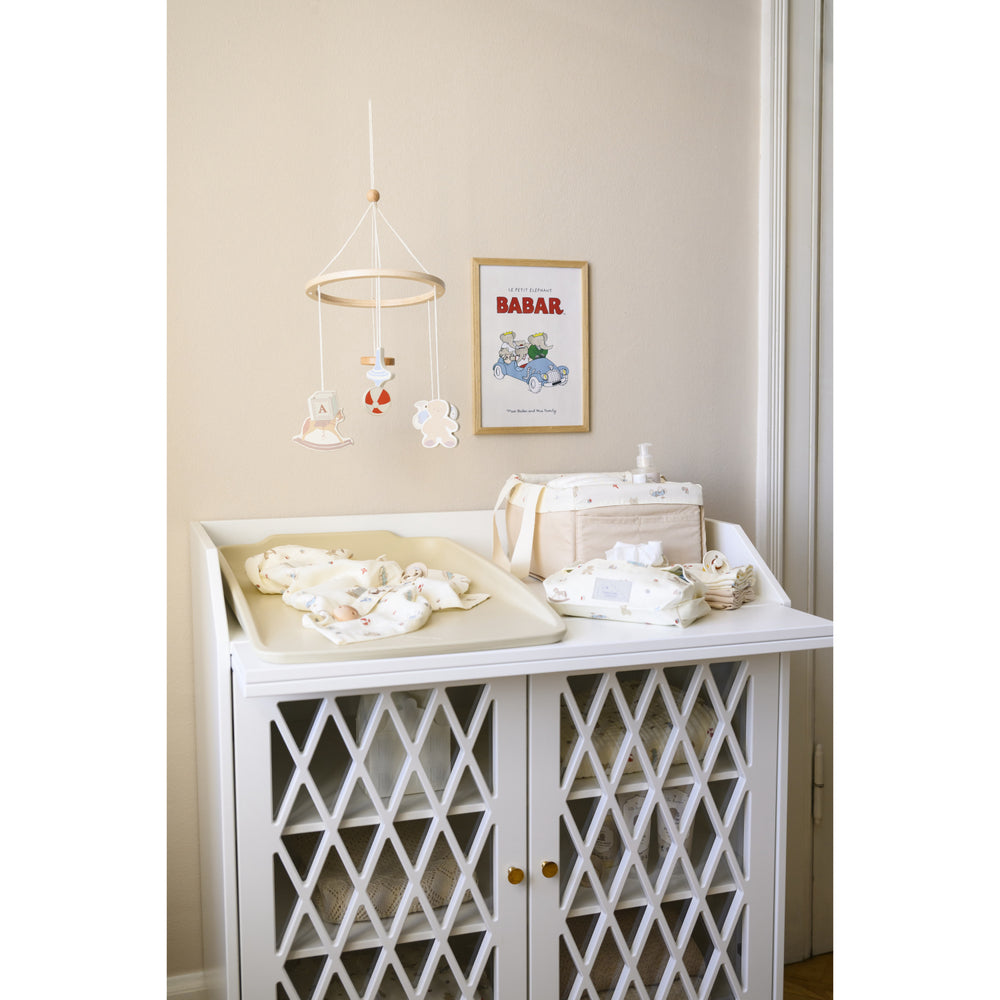 Oplev komfort og praktisk design med denne elegante puslepude i let sandfarve fra Cam Cam Copenhagen. Puden er fremstillet af blødt PUR skum og designet til daglig brug; den er vandafvisende, let at rengøre og kan desinficeres, hvilket sikrer hygiejne og lethed i den travle hverdag med små børn. Den varme overflade sikrer, at barnet ligger trygt og behageligt. Puslepuden, der er i overensstemmelse med europæiske sikkerhedsstandarder, passer perfekt til klassiske pusleborde og tilfører stil og funktionalitet til børneværelset. Alder: 0+ år Materialer: PUR-skum Mål: 64,6 x 41,4 x 8 cm Vaskeanvisninger: Tør af med en fugtig klud.