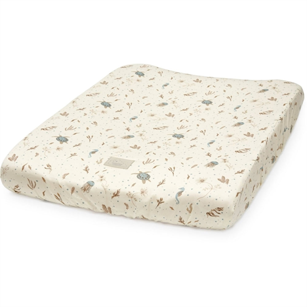Gør hverdagens ble-skift enklere med Cam Cam Copenhagen Puslepudebetræk i Sea Garden design. Dette betræk er udført med elastikkanter, der sikrer en hurtig og nem håndtering. Den coatede overflade afviser effektivt både vand og snavs, hvilket gør rengøringen til en leg. Designet med rolige grønne, brune og blå nuancer på en cremehvid baggrund tilfører et strejf af natur og ro til børneværelset. Den perfekte kombination af funktionalitet og stil til den moderne familie.