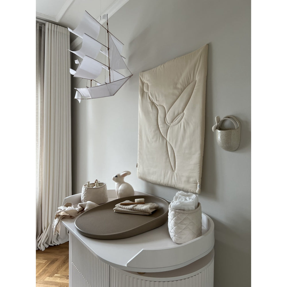 Gør bleskift nemt og sikkert med KAS Kopenhagen Brown Pebble Kai pusleunderlag. Dette førsteklasses underlag kombinerer komfort og sikkerhed, idet de høje kanter forhindrer din baby i at rulle væk under brug. Fremstillet i blødt, polstret polyurethanskum tilpasser det sig perfekt til barnets krop, hvilket giver en sikker og komfortabel oplevelse for både barn og forælder. Nem at rengøre og opbevare, dette pusleunderlag er en essentiel tilføjelse til ethvert børneværelse.