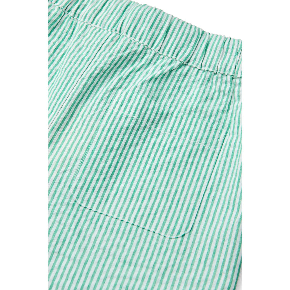 Disse bukser fra Copenhagen Colors kombinerer stil og komfort med en 100% GOTS-certificeret økologisk bomulds seersucker. Den afslappede silhuet har en elastisk snoretræk i taljen og praktiske sidelommer, hvilket gør den ideel til sommerbrug. Dens skarpe grønne farve med creme striber tilføjer et frisk og stilfuldt udtryk, perfekt til børns daglige eventyr. Let og åndbar, sikrer disse bukser behagelig pasform og nem pleje.