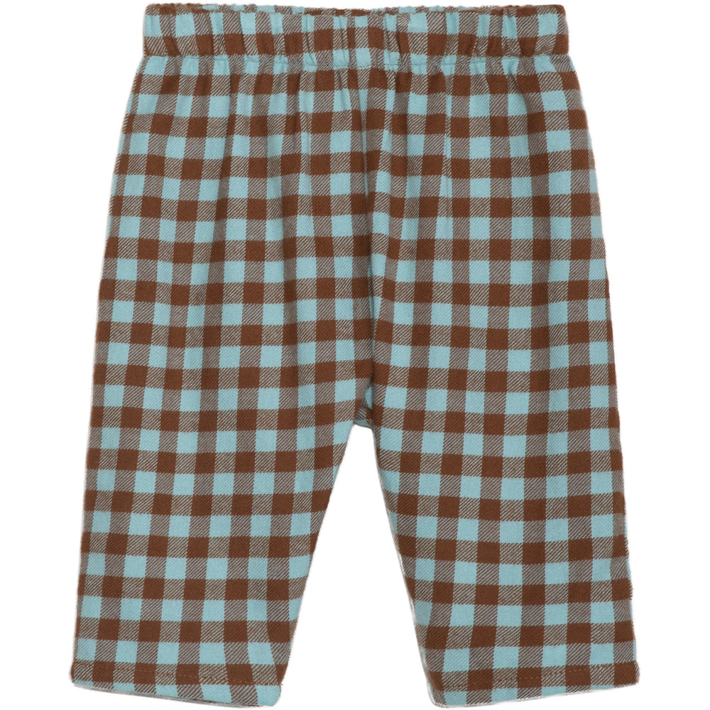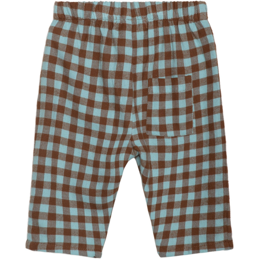 Oplev komforten ved disse løse babybukser i mørkebrun og blå. Vævet i blødt, børstet og 100% økologisk bomuld, disse bukser er både stilfulde og praktiske med elastik i taljen for let påklædning og en handy baglomme. Perfekt til hverdagsbrug, de tager sig af dit barns komfort og stil. GOTS-certificeret.