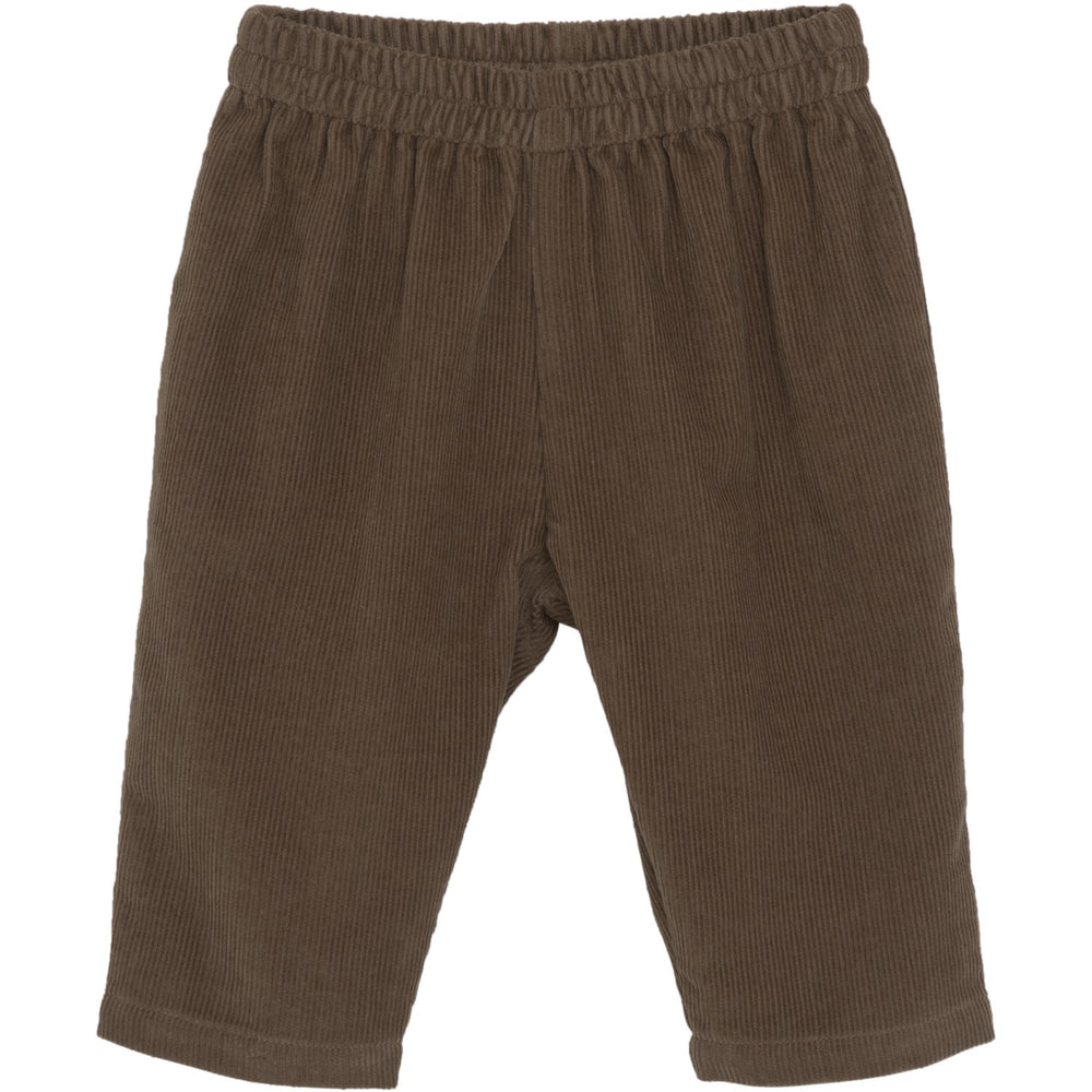 Opdag de behagelige fløjlsbukser til babyer i en smuk drivtømmerbrun nuance. Fremstillet af 100% økologisk bomuld med GOTS-certificering, sikrer disse bukser både komfort og kvalitet. Elastikken i taljen og de lige ben gør dem lette at tage på og behagelige i brug – ideelle til dit barns daglige eventyr.