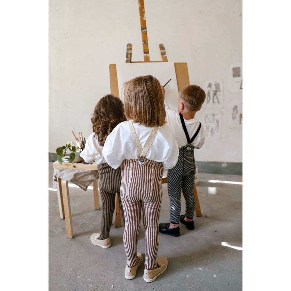 Gør hverdagen mere komfortabel og stilfuld for dit barn med Silly Silas Granola X Cream Striped Special fodløse strømpebukser. Disse unikke strømpebukser i blødt bomuld er designet med flotte grå og cremefarvede striber, der tilfører et moderne twist til børnegarderoben. Ideelle til varieret brug takket være det elastiske fit, som sikrer bevægelsesfrihed og komfort. Let at vedligeholde; kan maskinvaskes.