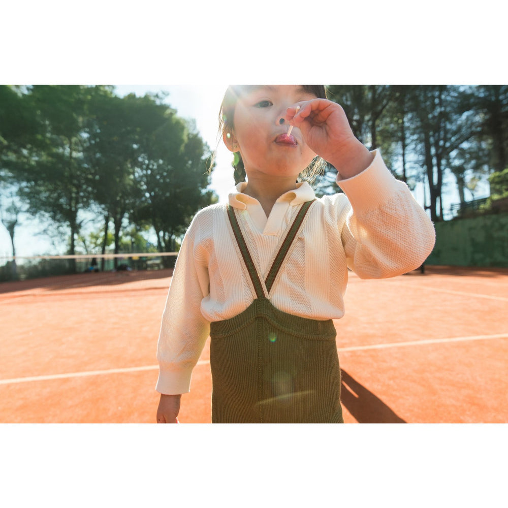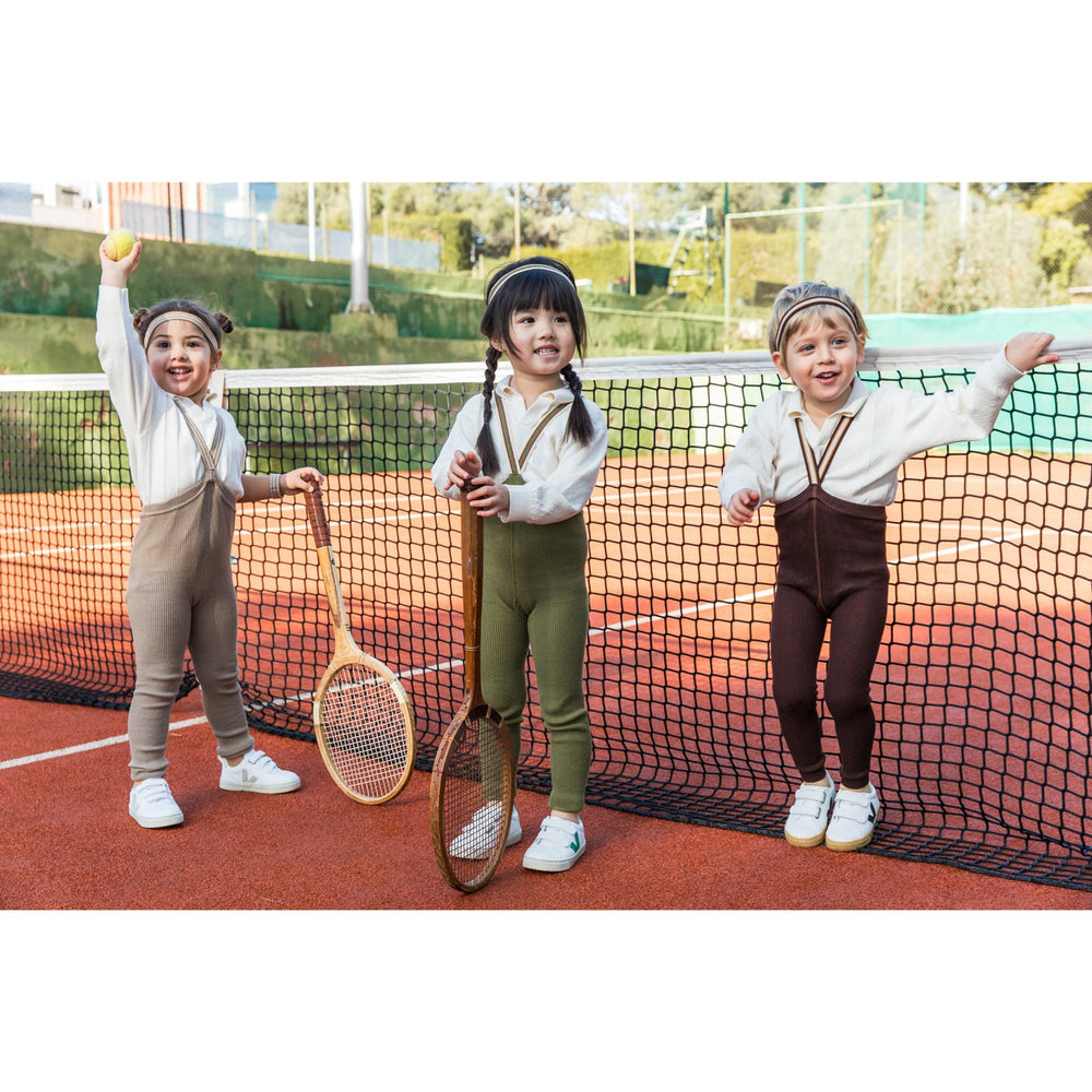 Disse charmerende fodløse Silly Silas tights med seler i olivenstriber er perfekte for den lille opdagelsesrejsende. Fremstillet i blødt materiale, sikrer de optimal komfort og bevægelsesfrihed. Tightsene er nemme at justere, hvilket gør dem ideelle til daglig brug. Et must-have i enhver børnegarderobe for både stil og funktionalitet.