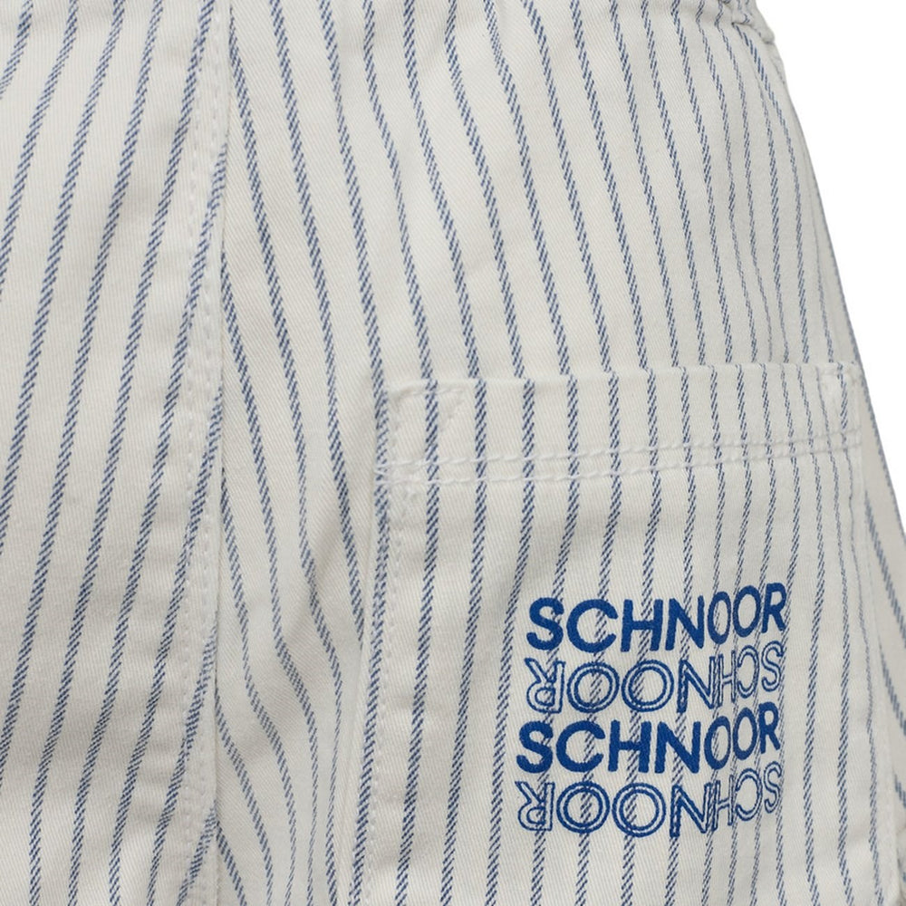 Disse komfortable bomuldsshorts fra Sofie Schnoor er perfekt til leg og afslapning. Det klassiske blåstribede design med praktiske forlommer og en dekorativ baglomme med "Schnoor" branding tilføjer stil, mens bindebåndet i taljen sikrer en god pasform. Ideelle til aktive børn, som værdsætter både komfort og stil.