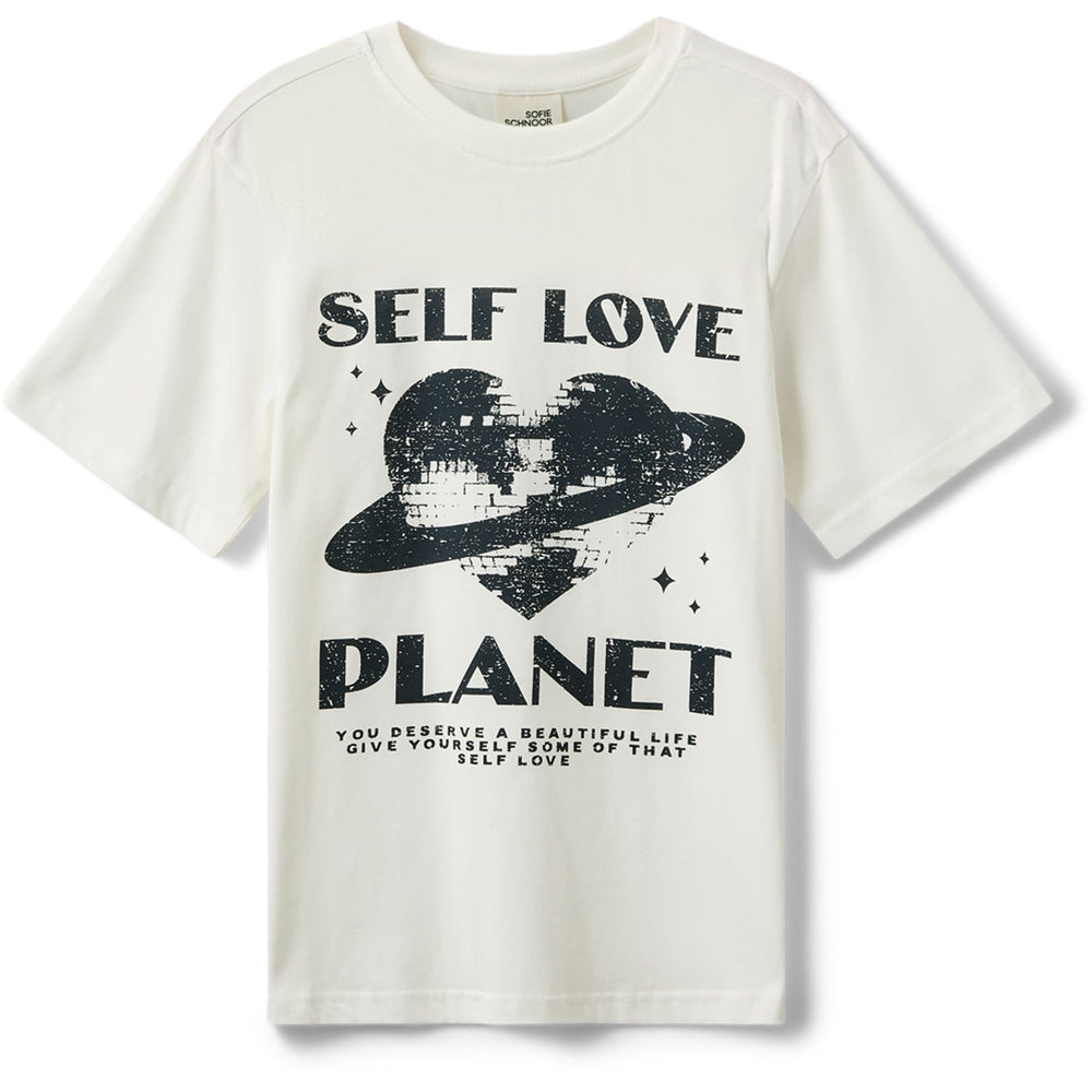 - Ekstra: •T-shirt • Klassisk pasform • Rund hals • Stort tryk på forsiden med teksten "Self Love Planet" og motiv med discohjerte
