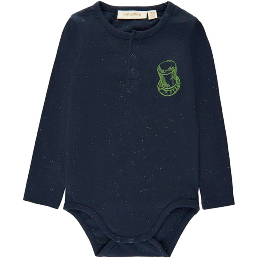 Denne bløde bodystocking fra Soft Gallery er fremstillet i behagelig økologisk bomuld med fine neps detaljer i stoffet. Den har en klassisk blå farve og nemme trykknapper ved skulder og mellem benene for enkel påklædning. Ideel til hverdagsbrug, sikrer den komfort og bevægelsesfrihed for dit barn.