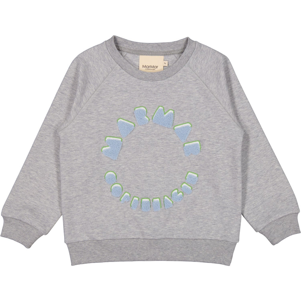 Gør dit barns garderobe både komfortabel og stilfuld med MarMar Double Jersey Blue Logo Theos Sweatshirt. Denne sweatshirt har raglanærmer og blød ribkant i halsen samt ved ærmerne og livet for maksimal komfort. Fremstillet i slidstærk sweatjersey, der bevarer både form og farve, sikrer denne sweatshirt en strækbar og behagelig pasform. Desuden er materialet Oeko-tex® certificeret og testet for skadelige kemikalier, hvilket gør den ideel til børns følsomme hud.