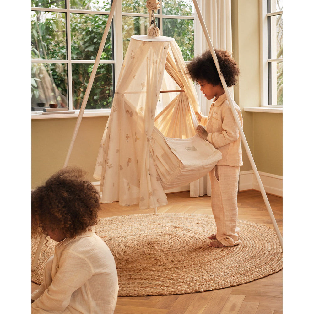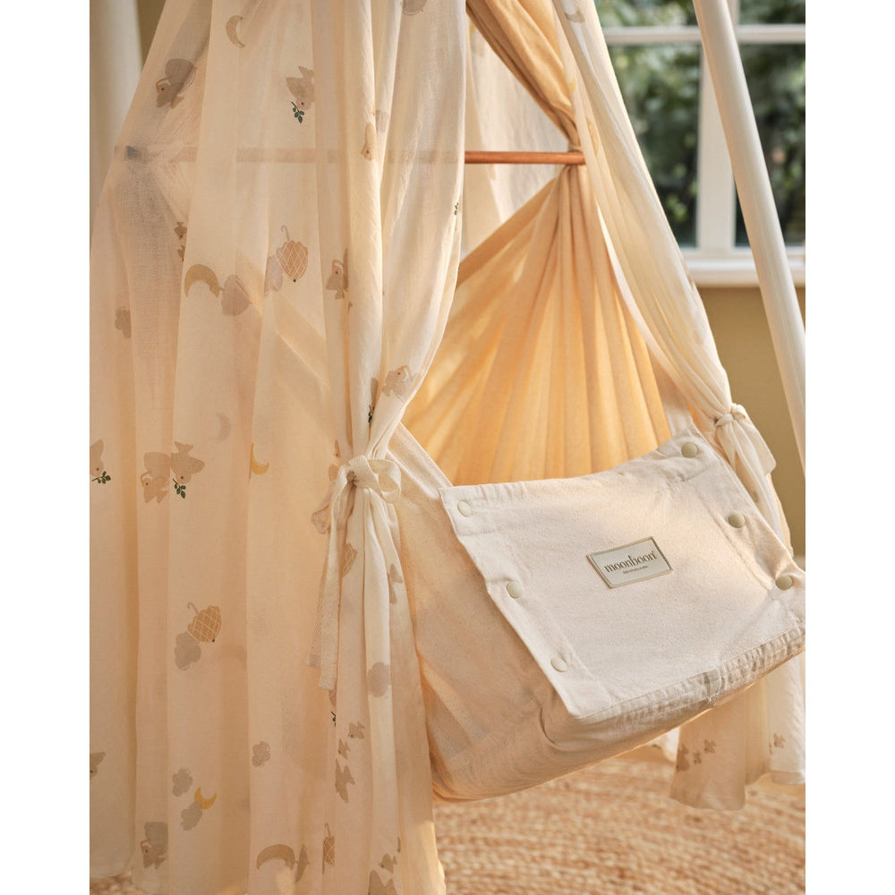 Forvandl børneværelset med denne elegante sengehimmel fra Moonboon, der garanterer en tryg og rolig søvn. Designet til at dæmpe lys og minimere forstyrrelser, sikrer denne GOTS-certificeret økologisk bomuld-himmel en sund søvnemiljø, mens den tillader optimal luftcirkulation. Let at installere på enhver Moonboon vugge eller slyngevugge, integrerer denne himmel skandinavisk stil og funktionalitet i hjemmet.