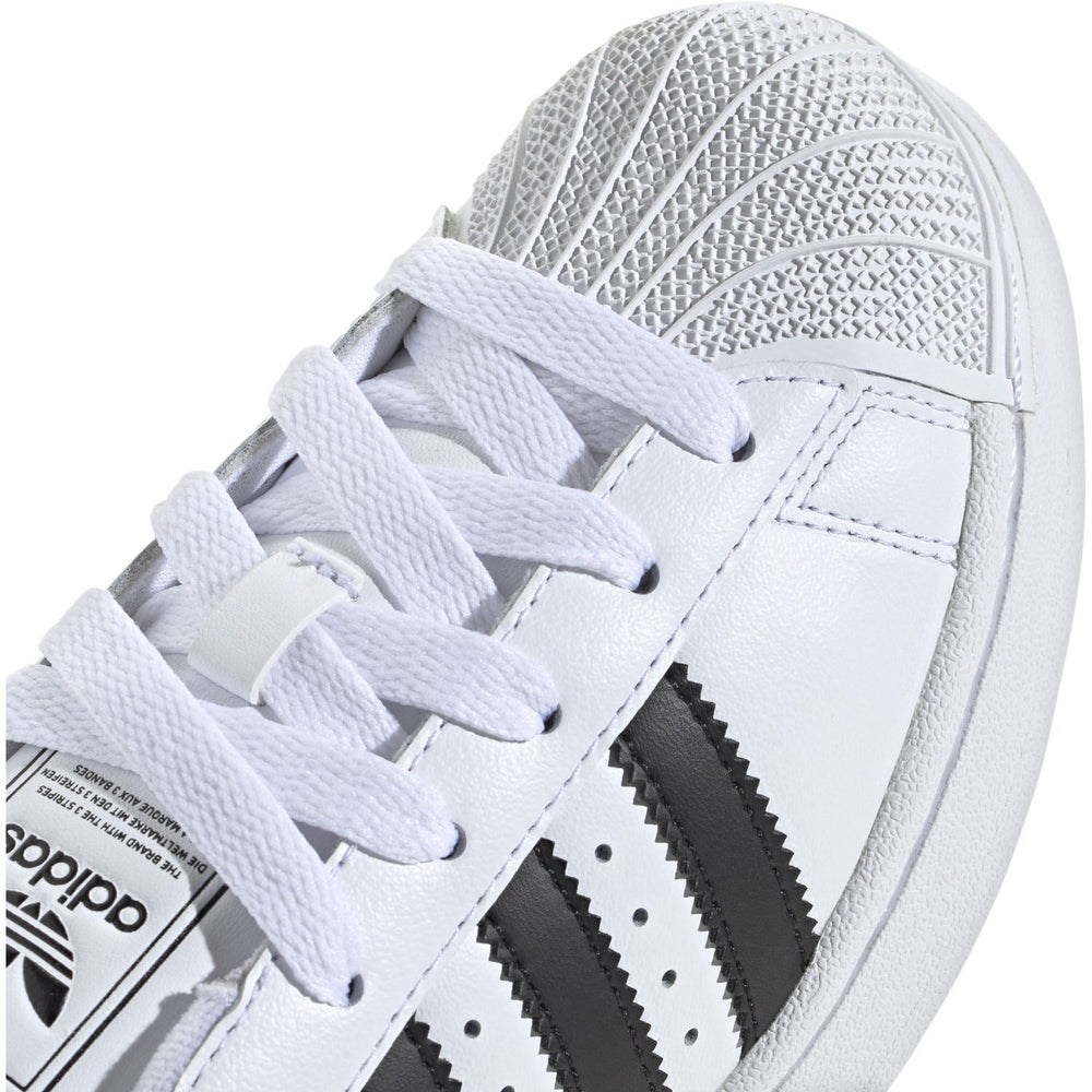 • Ekstra: Savtakkede 3-striber, Superstar-bokslogo på pløsen, Trefoil-logo på hælfligen.
