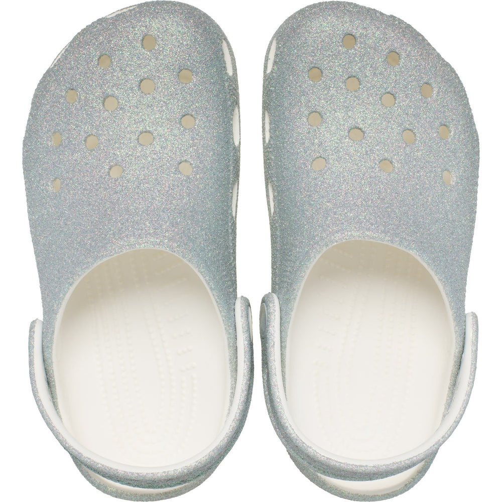Crocs White Classic Iridescent Glitter Gloc