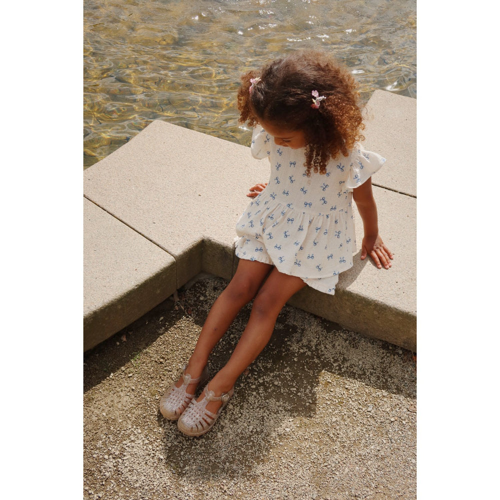 Konges Sløjd Tigers Eye Nea Glitter Sandal er den perfekte ledsager til barnets sommeraktiviteter. Med en klassisk rem og spænde lukning, tilbyder disse badesko optimal pasform og støtte til små eventyrere. Fremstillet i holdbare materialer er de ideelle til både daglig brug og til sjov på stranden. Let at justere for komfort og sikkerhed.