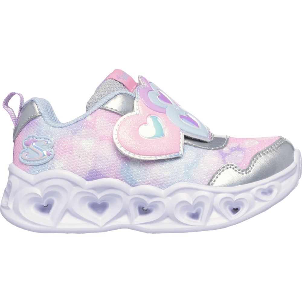 Opdag magien ved hvert skridt med Skechers Heart Lights - Lovin Reflection sneakers. Disse charmerende sko er designet med en funklende mesh-overdel og holdbare syntetiske forstærkninger, perfekt for det eventyrlystne barn. Farven er levende, og det ikoniske "hjertekæde"-motiv på den lysende mellemsål tilføjer et strejf af legesyghed. Justerbare remme omkring vristen sikrer en personlig og behagelig pasform. Sneakeren kombinerer fantastisk stødabsorbering og en fleksibel ydersål, der giver suverænt greb. Dertil kommer en blød, polstret indersål, der masserer fødderne med hver bevægelse. Lavet med omtanke og kærlighed, er disse sneakers ideelle til både skolebrug og leg i fritiden, hvor de lyser op omgivelserne og skaber glæde.