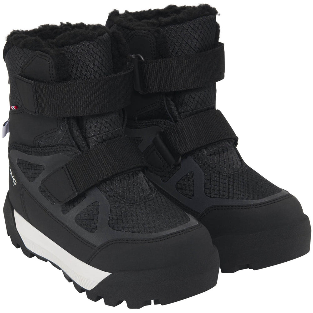 Gør vinterdagene varmere og sikrere for dit barn med VIKING Black Constrictor Warm SC WP 2V vinterstøvler. Disse støvler er udstyret med avanceret Solarcore® teknologi, udviklet i samarbejde med NASA, hvilket giver ekstraordinær varme som aktiveres under kompression. Designet er robust med dybe gummi knopper på ydersålen for optimal trækkraft og holdbarhed. Forstærkninger på tå og hæl øger beskyttelsen, mens dobbelte velcroremme gør det let for små hænder at justere pasformen. Den perfekte kombination af teknologi og komfort til dit barns vinterlege.