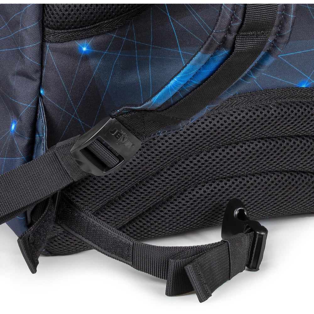 JEVA Anton Rygsæk Survivor 323 er den ideelle ledsager for dit barns skoledage og fritidsaktiviteter. Denne lette rygsæk vejer kun 760 gram og har en kapacitet på 26 liter, hvilket giver god plads til bøger, en 15" laptop og personlige ejendele. Rygsækken er designet med ergonomisk rygstøtte og justerbare remme, hvilket sikrer en behagelig pasform og optimal vægtfordeling. Den indeholder en polstret pc-lomme, multifunktionelle organizer-lommer samt vandtætte lynlåse, der beskytter indholdet mod vejret. To sidelommer er ideelle til drikkedunke, hvilket gør rygsækken perfekt til lange skoledage eller weekendture.