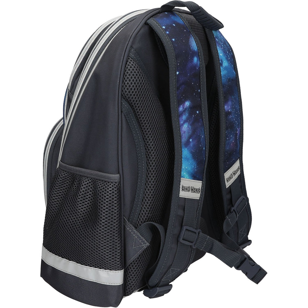 Med Dino World Galaxy Skoletaske bliver hver skoledag en spændende eventyrrejse for dit barn. Designet med legefulde T-rexer mod en stjernespekket baggrund, er denne skoletaske ikke kun sjov, men også ekstremt praktisk. Skoletasken indeholder et stort rummeligt hovedrum og smart opdelte forlommer til nem organisering af skolesager og frokost. De justerbare skulderstropper og brystrem sørger for en behagelig pasform, mens mesh-polstringen i ryggen tilbyder optimal ventilation. Reflekserne sikrer god synlighed på vej til skole. Perfekt til en aktiv skoledag!